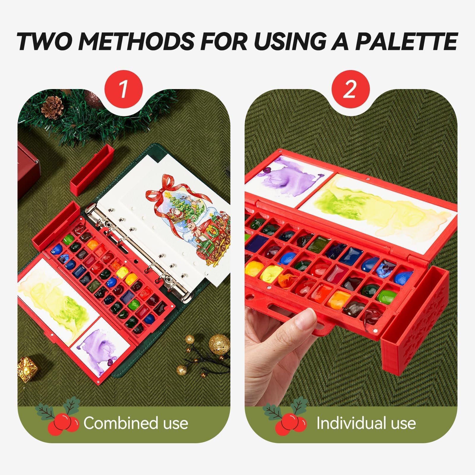 ポータブル水彩スケッチブックセット - コットン100%ホットプレス 6.7x3.9インチ バインダーアートジャーナル 36ウェルセラミックペイントパレット&トラベルウォーターブラシ2本付き アーティスト屋外ペインティング