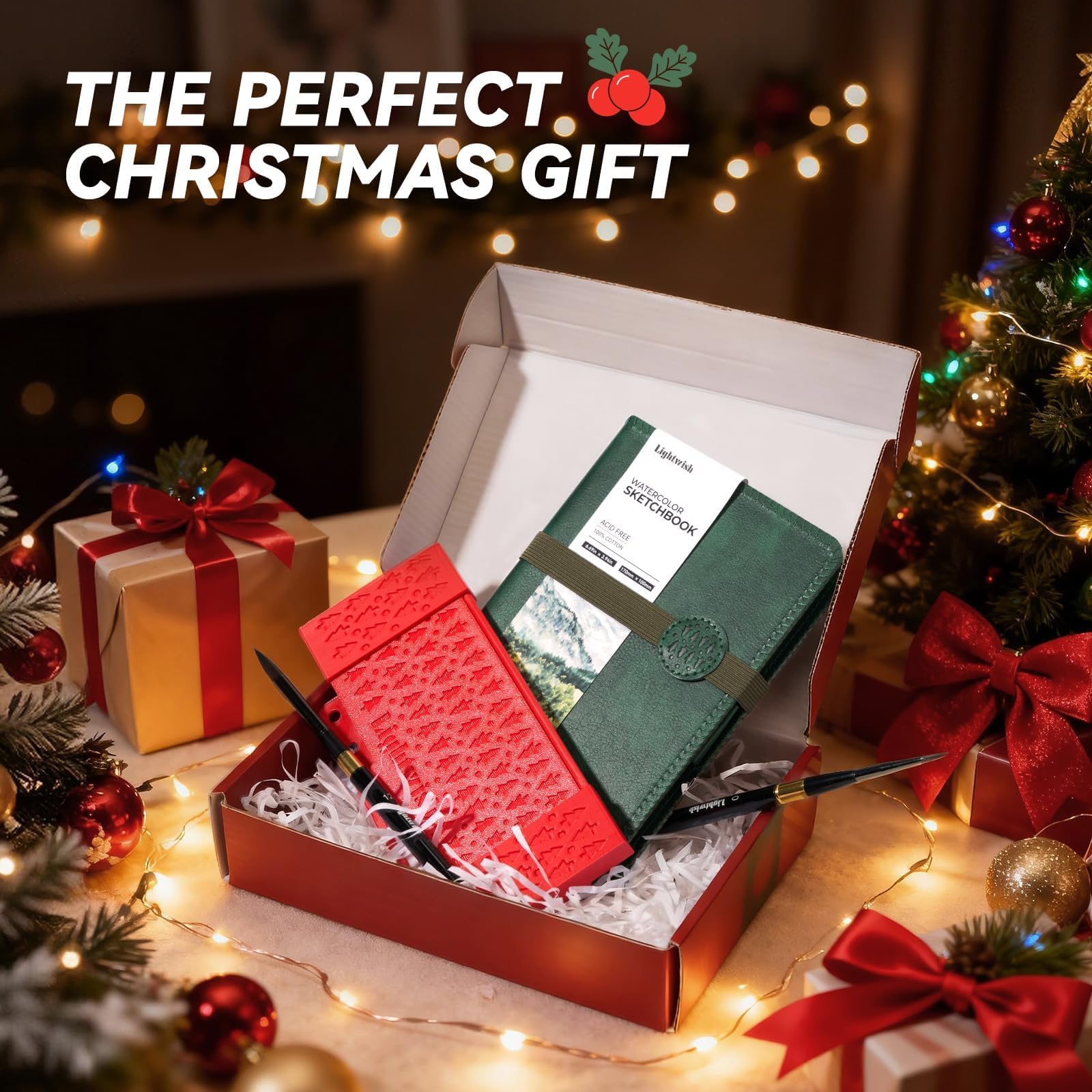 LIGHTWISH 水彩スケッチブック コットン100% 300g/m² 細目 20枚 14×21cm アーティスト用 携帯 水彩 色鉛筆 アクリル対応 日記帳
