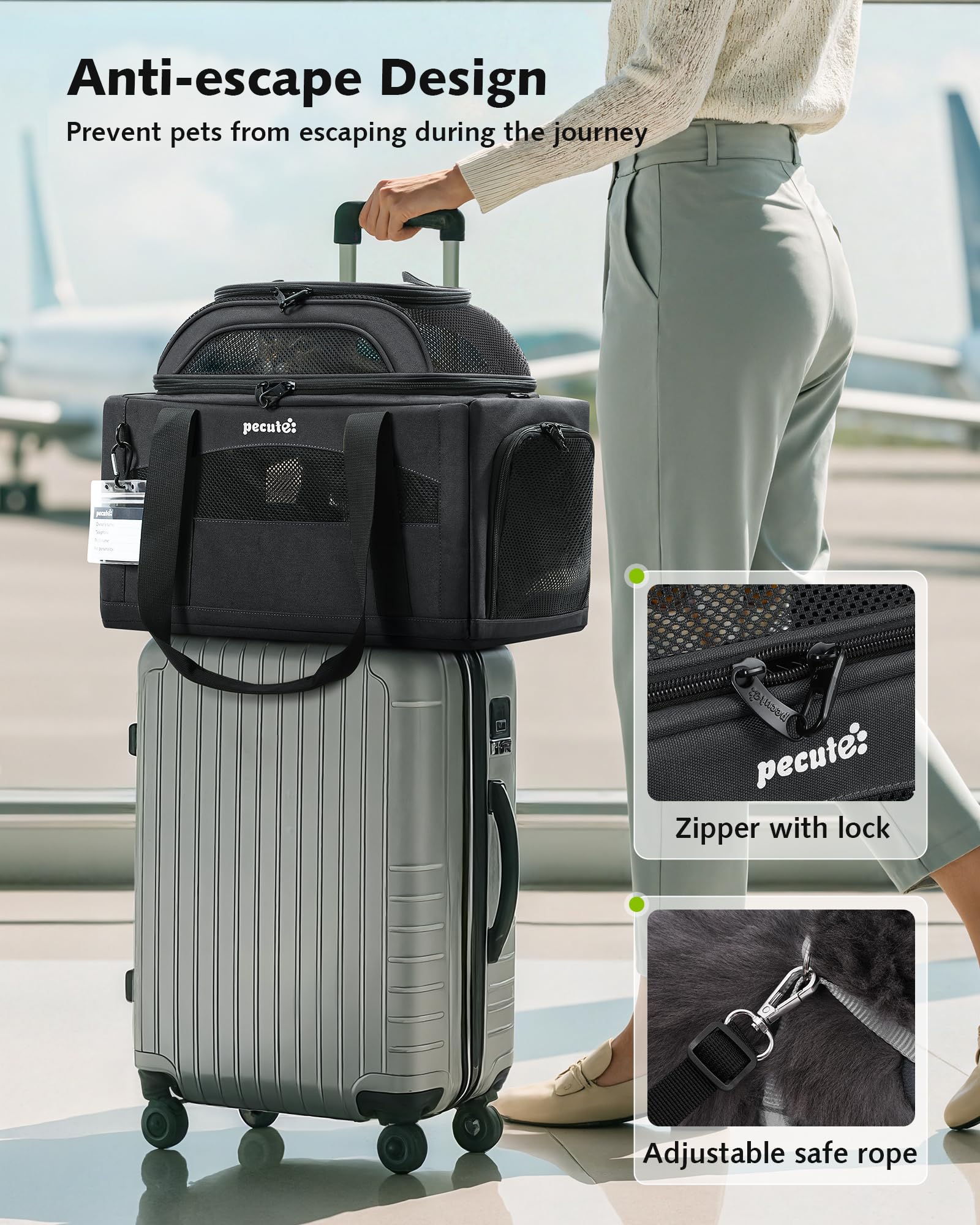 Pecute ペキュート ペット キャリーバッグ 手提げ キャリー ショルダー 猫 ウサギ 小型犬 小動物用 通気性 脱歩防止 持ち運びやすい ドライブ 旅行 black