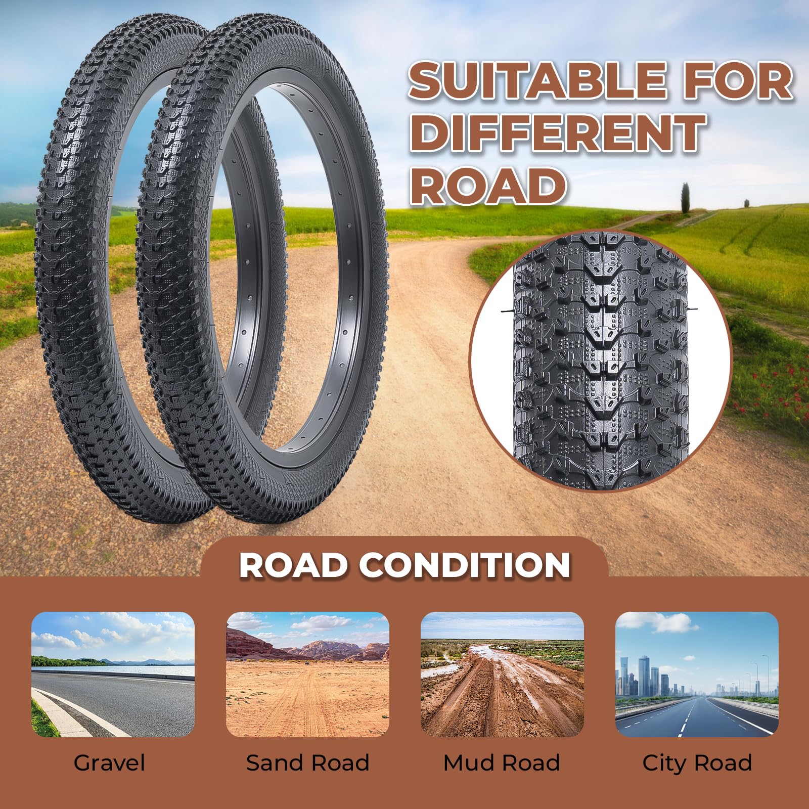 MetersGod 2本,18x2.125 自転車タイヤ,耐久性がある 折りたたみ 18インチ 57-355 18x2.125 マウンテンバイクタイヤ,マウンテンバイク クルージングバイク用のリプレイスメントタイヤ,クリンチャータイプ,MGW025
