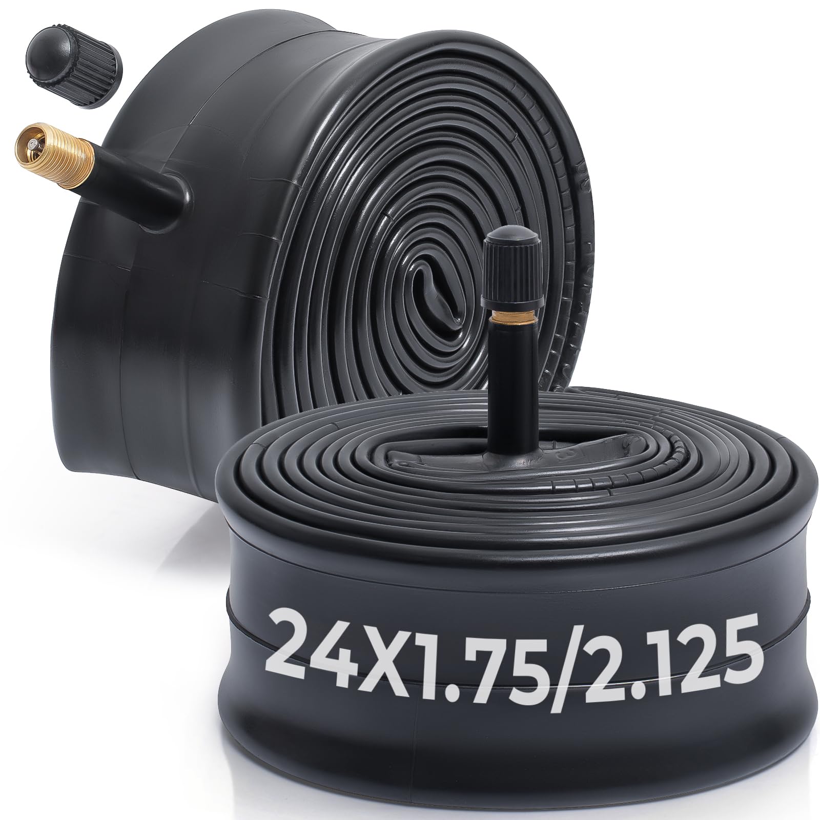 MetersGod 2本,24x1.75/1.95/2.0/2.10/2.125 自転車チューブ,24x1.75-2.125 自転車タイヤに対応,米式バルブ32mm,ブチルゴム,適用マウンテンバイク、クロスバイク、シティバイク,MGN006
