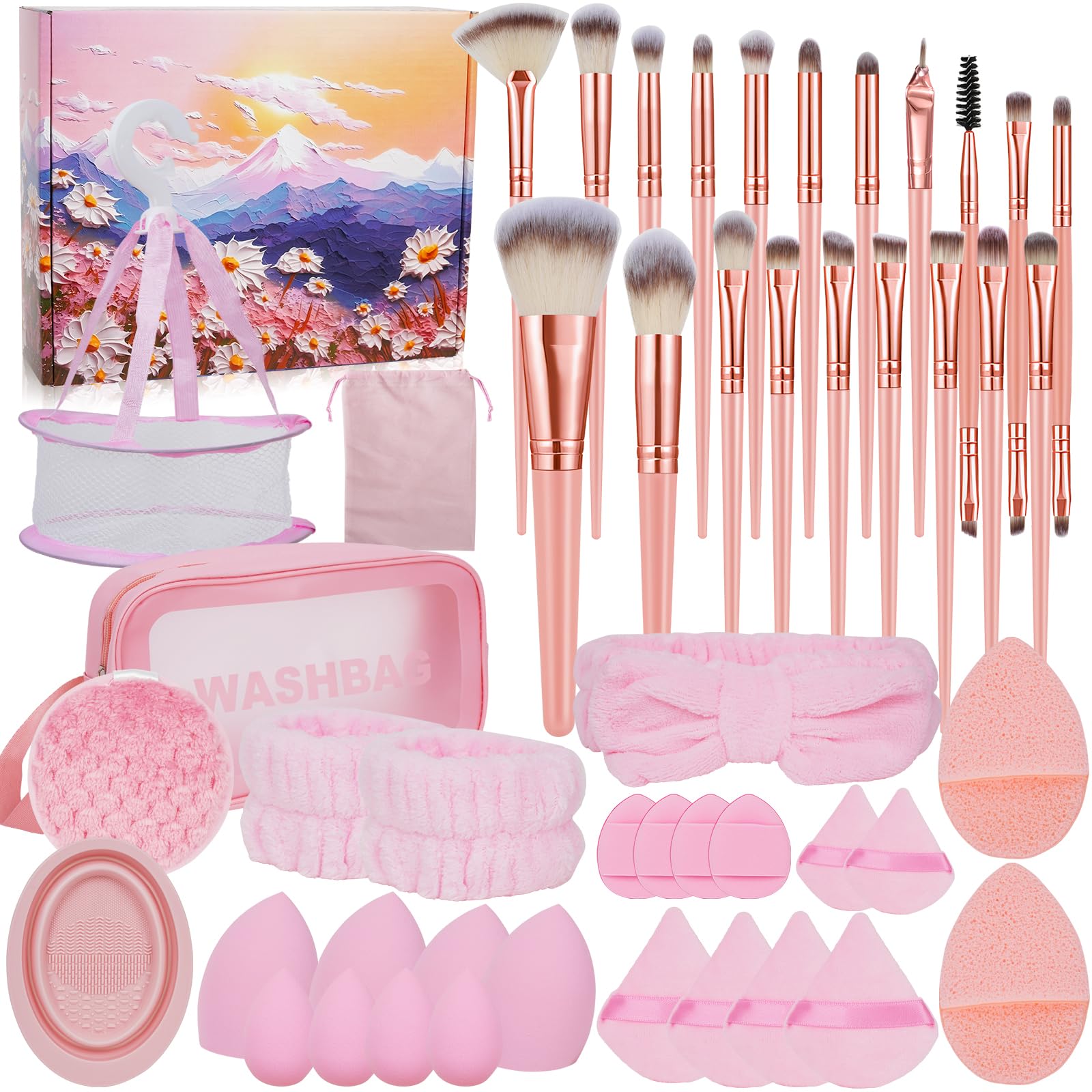 QYONLINE メイクアップブラシセット 48個セット 化粧ブラシ プロフェッショナルメイクアップキット メイク用パフ ヘアバンド エレガンス 柔らかい 化粧ポーチ付き ファンデーションブラシキット メイク道具セット