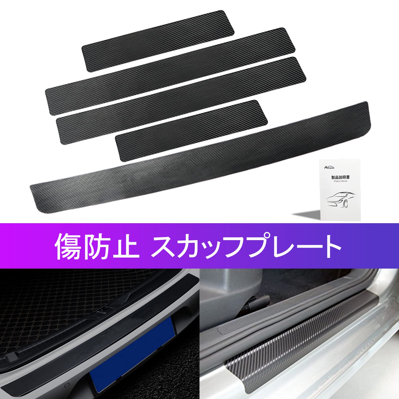 AUTOYUZU サイドステップガード スカッフプレート バンパーガード カーボンシート 車用ドアモール サイドモール ドアガードステッカー スカッフプロテクトシート キズ防止 両面テープ付き 汚れ防止 汎用 極薄 簡単装着 5個セット 黒ベース 製品説明書付き