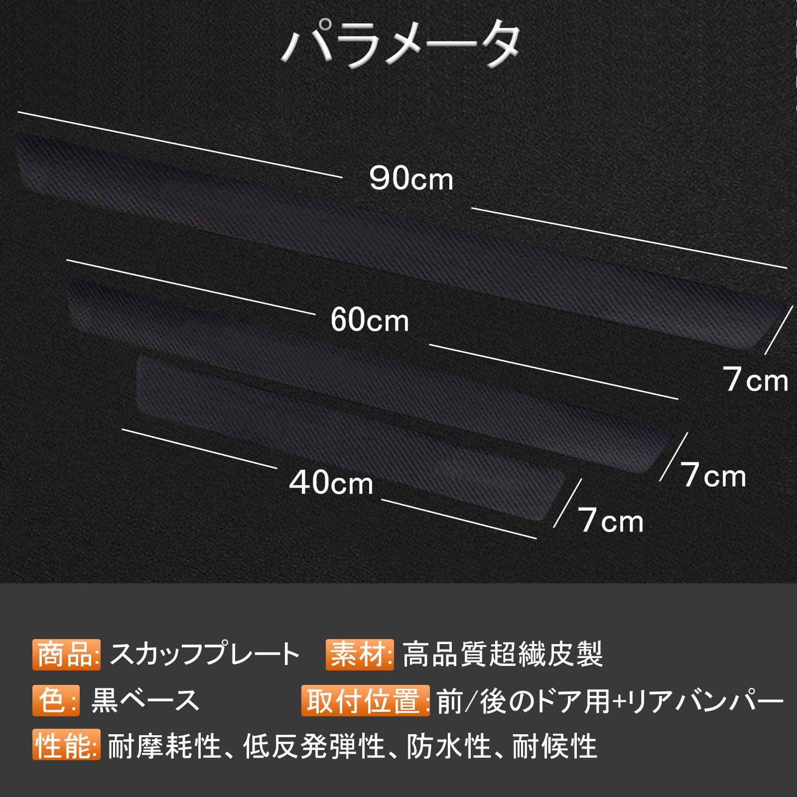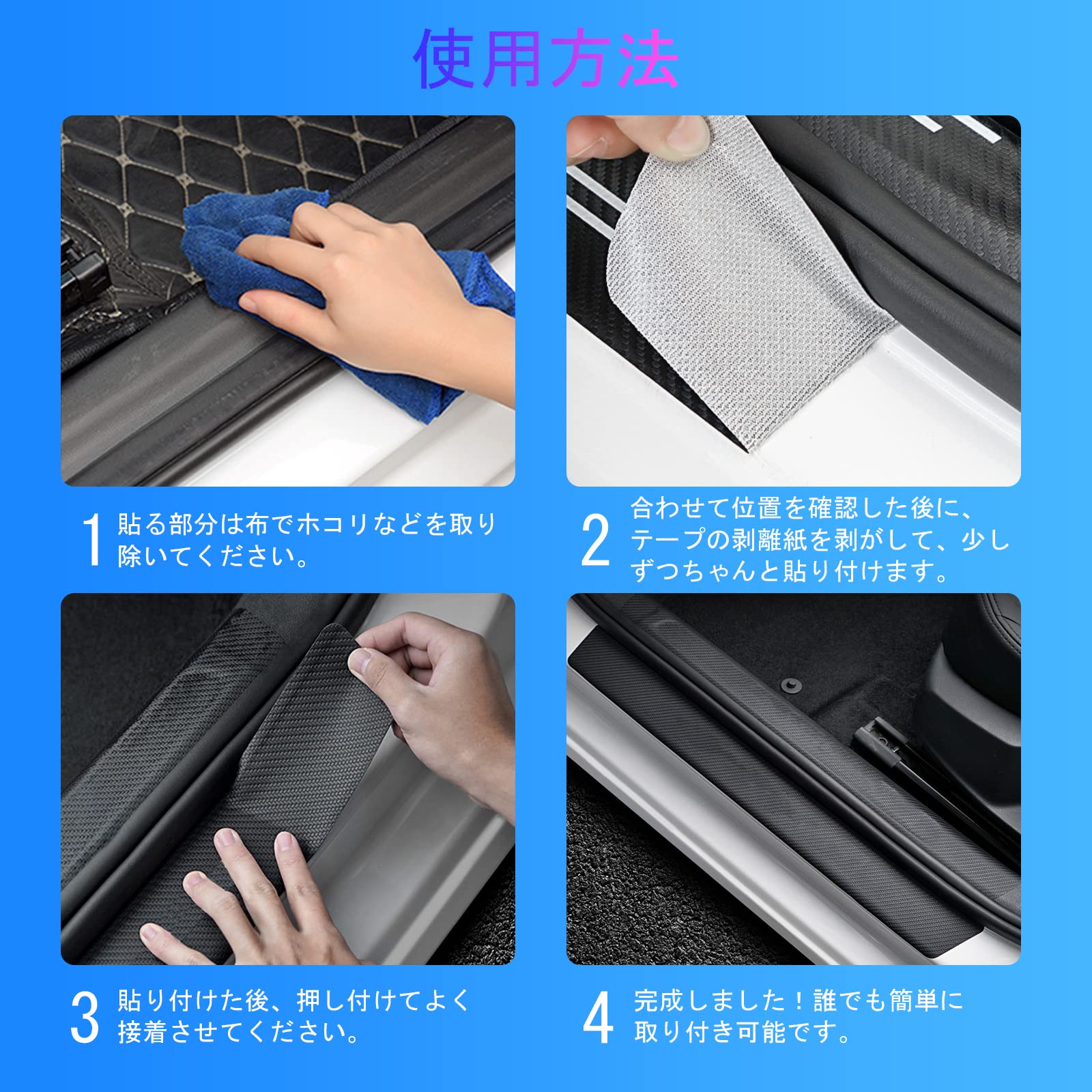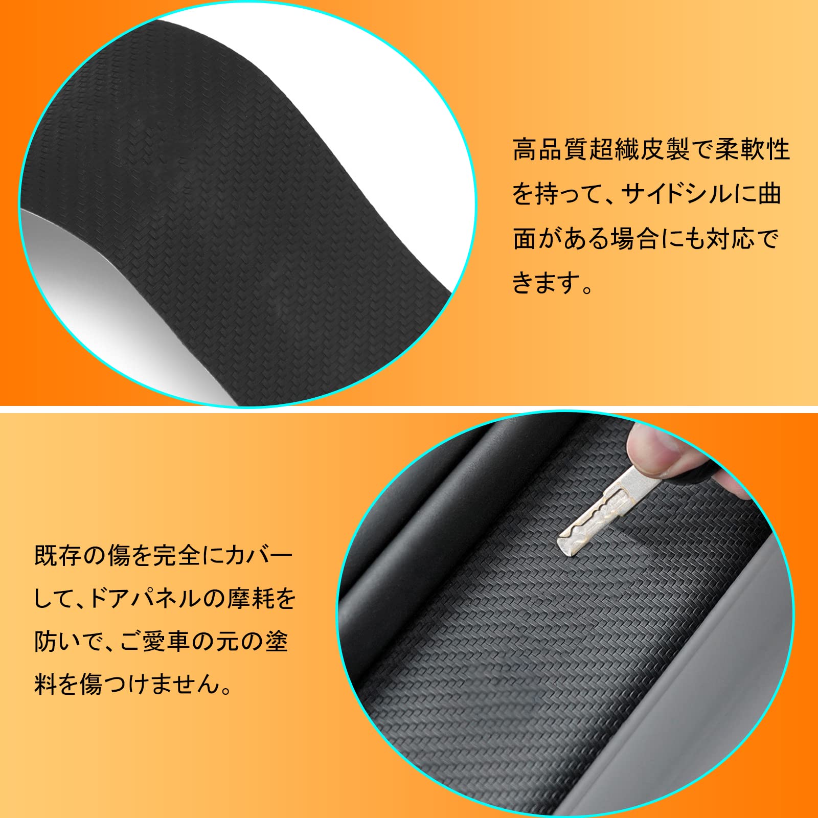 AUTOYUZU サイドステップガード スカッフプレート カーボンシート 車用ドアモール サイドモール ドアガードステッカー スカッフプロテクトシート キズ防止 両面テープ付き 汚れ防止 汎用 極薄 簡単装着 4個セット 黒ベース 製品説明書付き