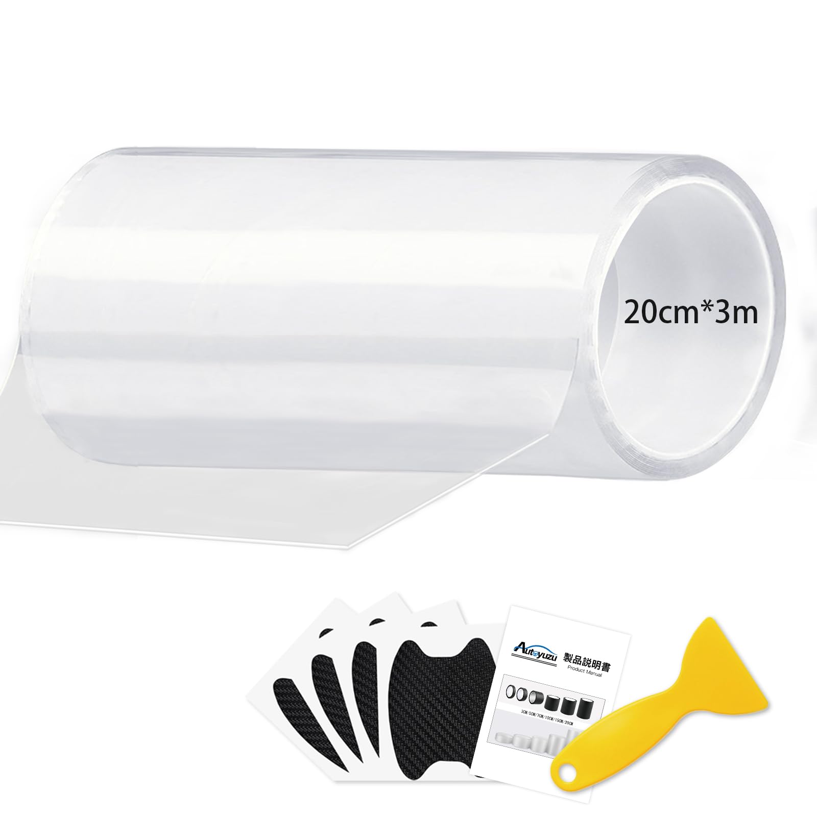 AUTOYUZU 20CM*3M 車用ドアフィルム プロテクターフィルム プロテクションフィルム ボディ保護フィルム サイドステップガード スカッフプレート バンパーガード キズ防止 テープ式 汚れ防止 汎用 簡単装着 アップグレード TPH 製 透明ベース