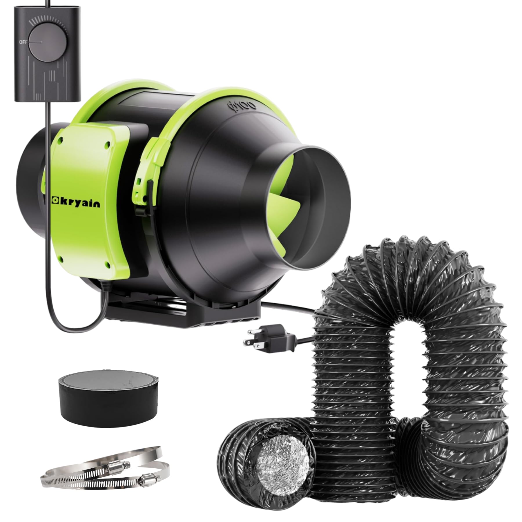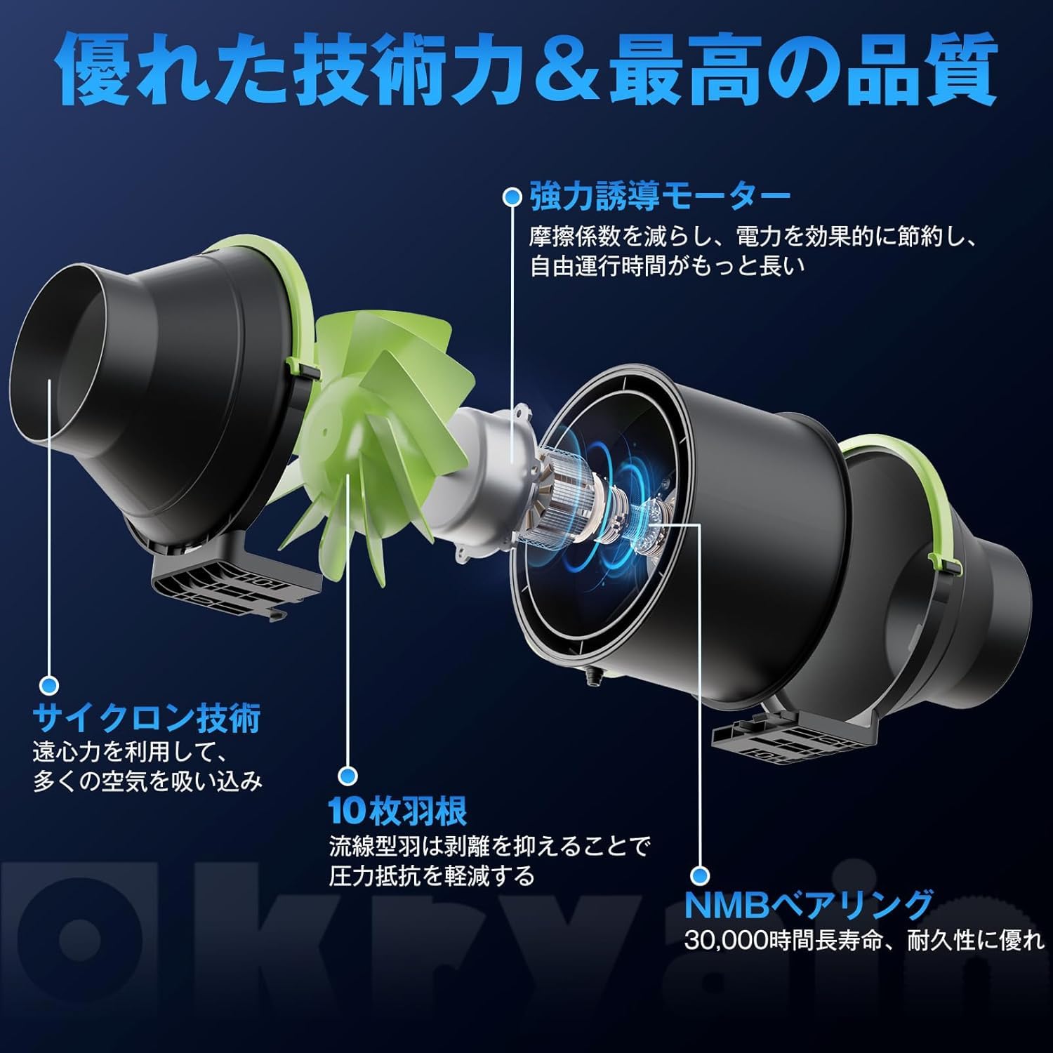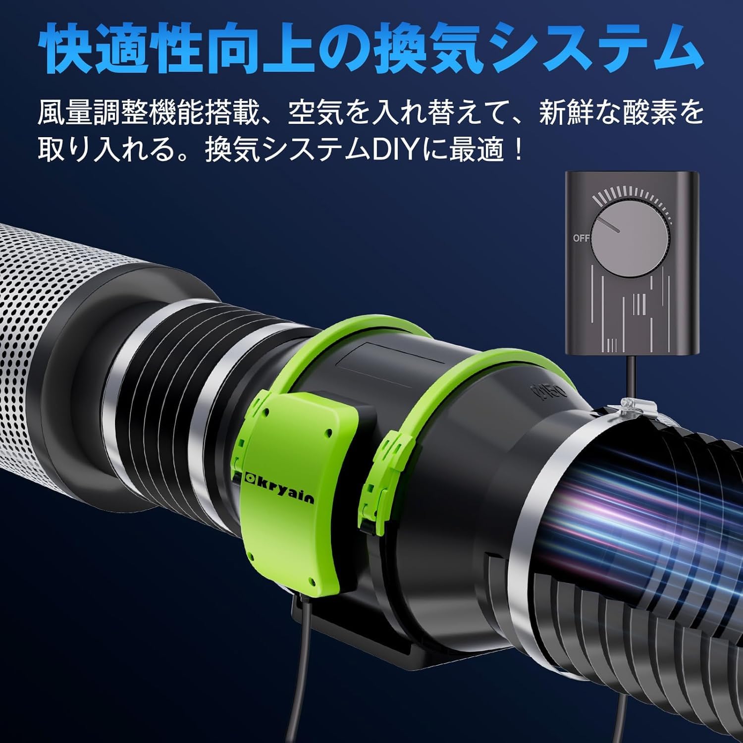 Okryain ダクトファン 100mm 排気セット ダクト用換気扇 業務用有圧換気扇 無段階風量調速可能 風量348㎥/h 中間取付形ダクトファン 塗装ブース用換気扇 100-120V 換気/DIY塗装/焼肉/温室/ペットトイレ (GF-100Pセット)