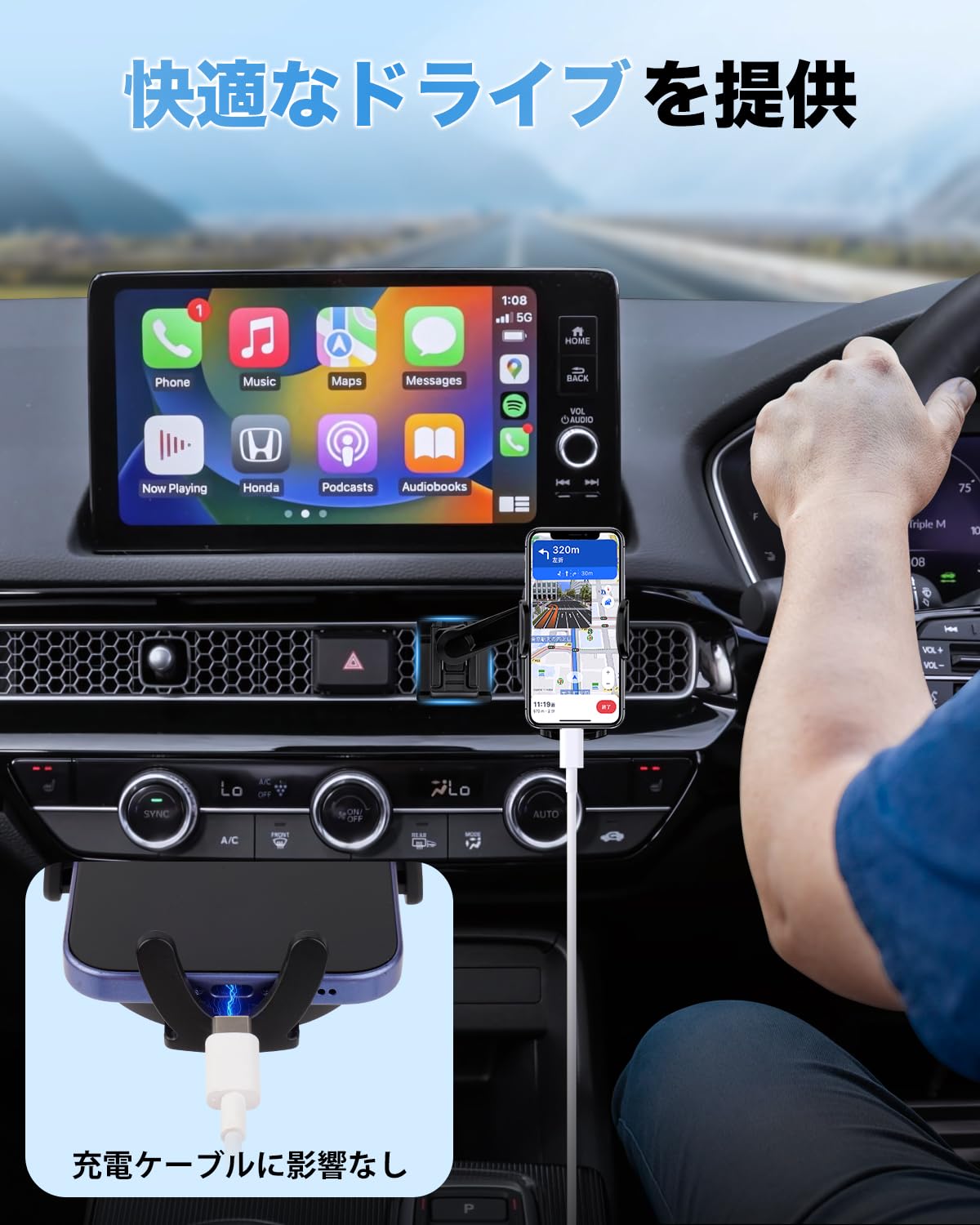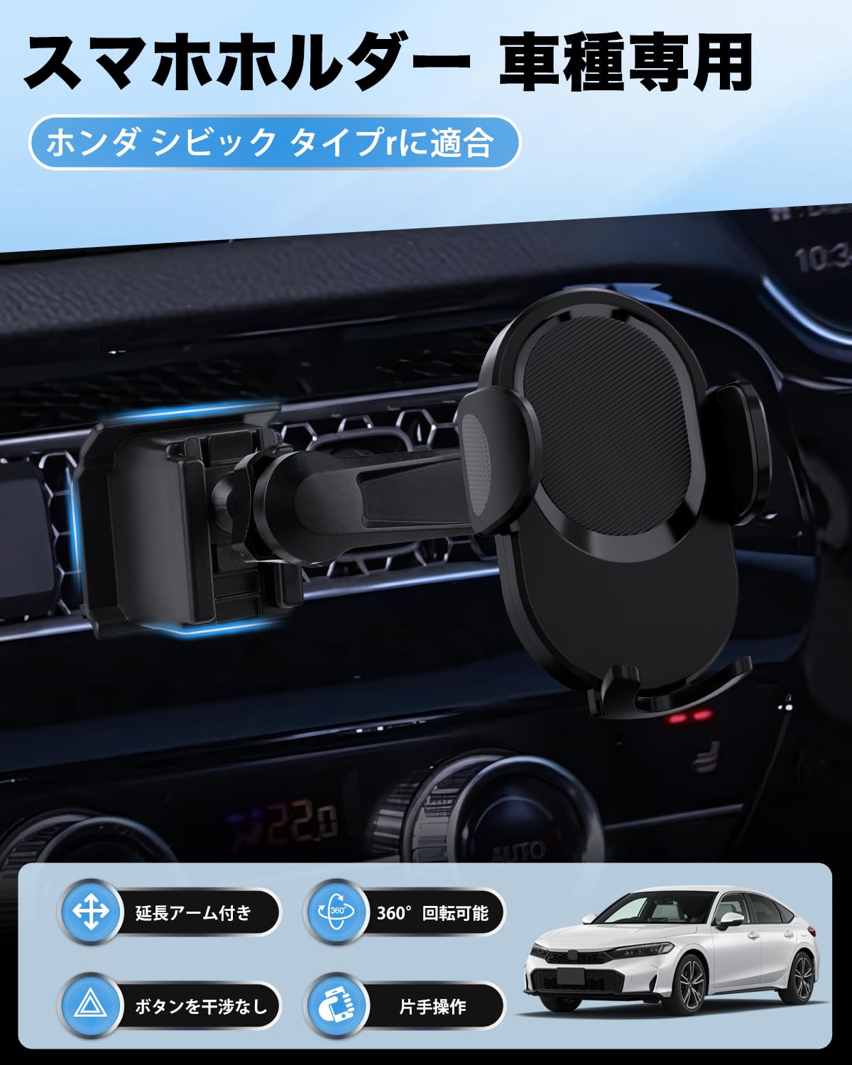 CARTIST ホンダ シビック FL タイプr スマホホルダー CIVIC TYPE-R FL5/FL1/FL4 スマホスタンド 携帯ホルダー 延長アーム付き【ハザードボタンを邪魔なし】 安定固定 車載ホルダー 360度回転 落下防止 縦横向き可 ほとんどのスマホ対応 パーツ アクセサリー 内装 取付簡単