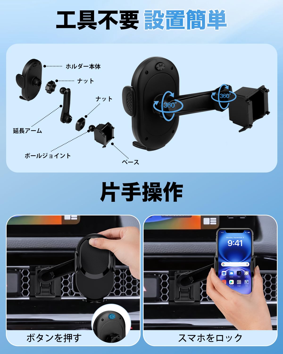 Cartist トヨタ アルファード30系 9インチナビ スマホ ホルダー 運転席側用 右ハンドル ALPHARD 30系 2016~ 携帯 ホルダー スマホスタンド 片手操作 エアコン 送風口 360度回転 車載ホルダー 固定 取付簡単