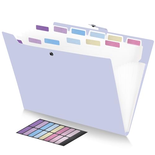 FRETONBA ドキュメントファイル 13ポケット A4 拡張フォルダー スナップ式 ジャバラファイル 区分けラベル付き 防水 分類収納 透明仕切り プリント整理 書類整理ボックス 多機能 書類ケース 軽量 持ち運び可能 (パープル)