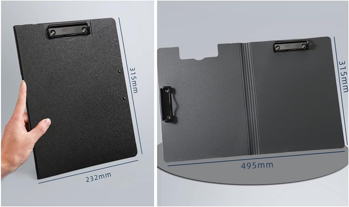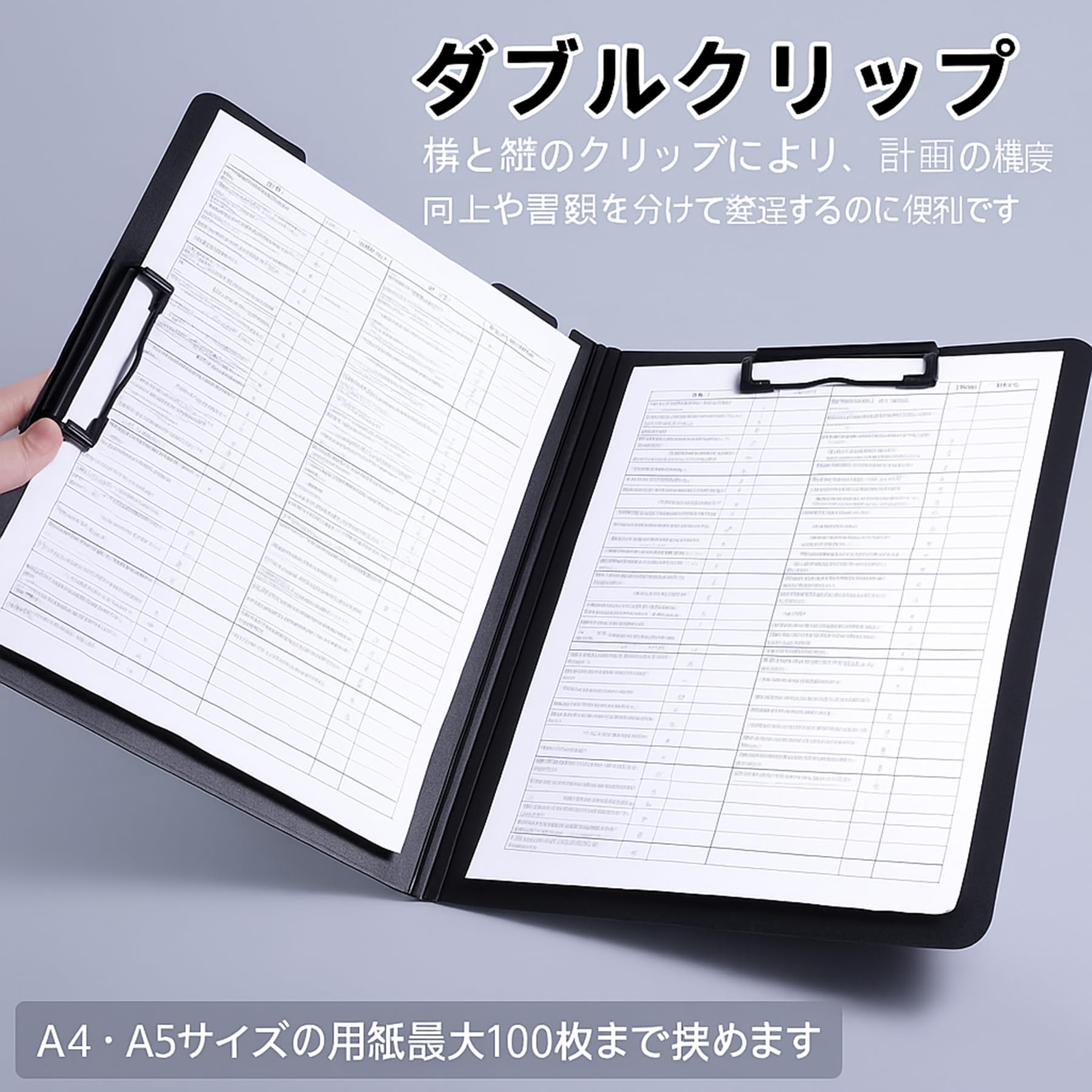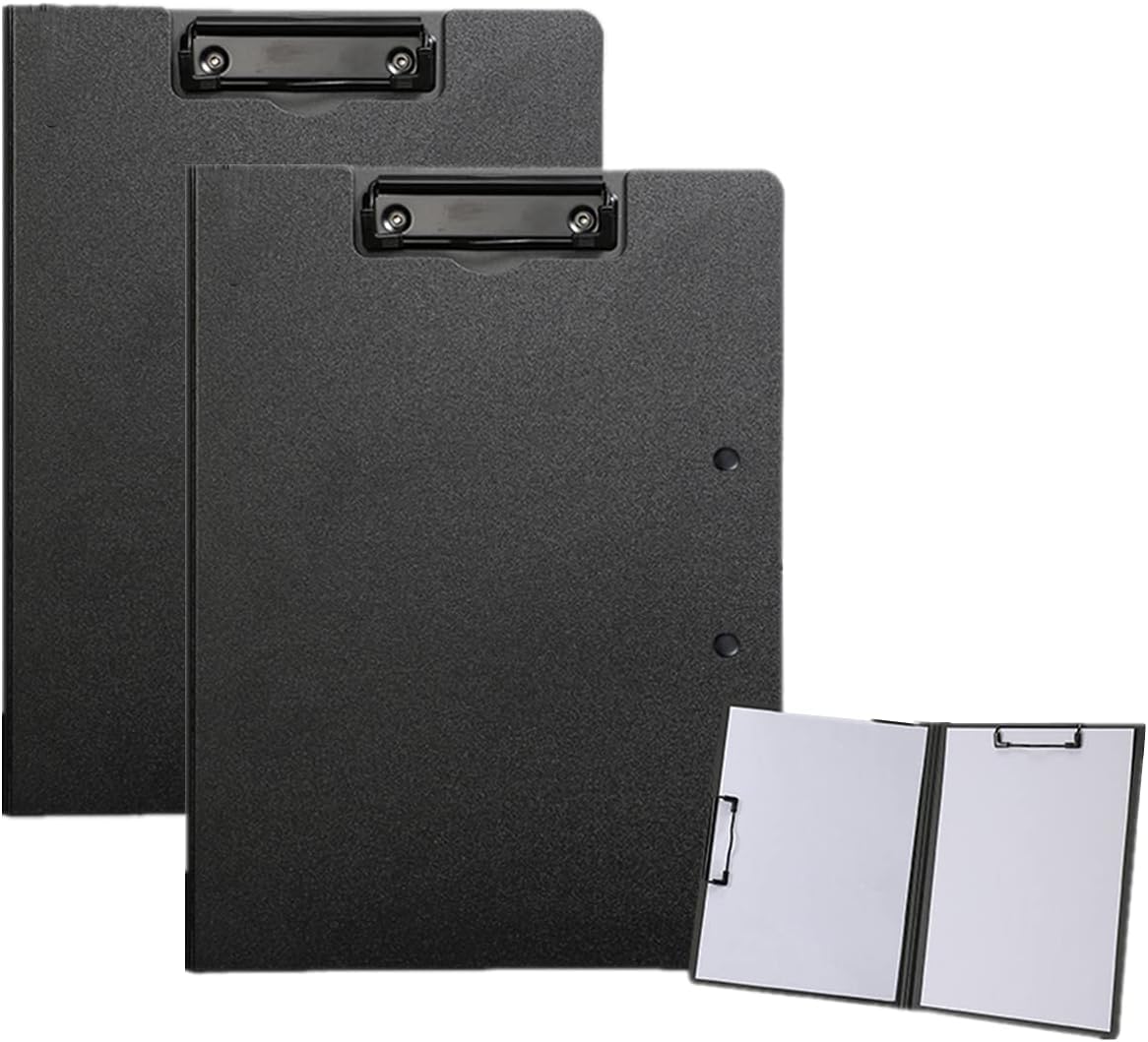 A4 2つ折り クリップボード ブラック 2個入り 薄型 ダブルクリップ バインダー 防水 軽量 おしゃれ 折りたたみ 書類ホルダ
