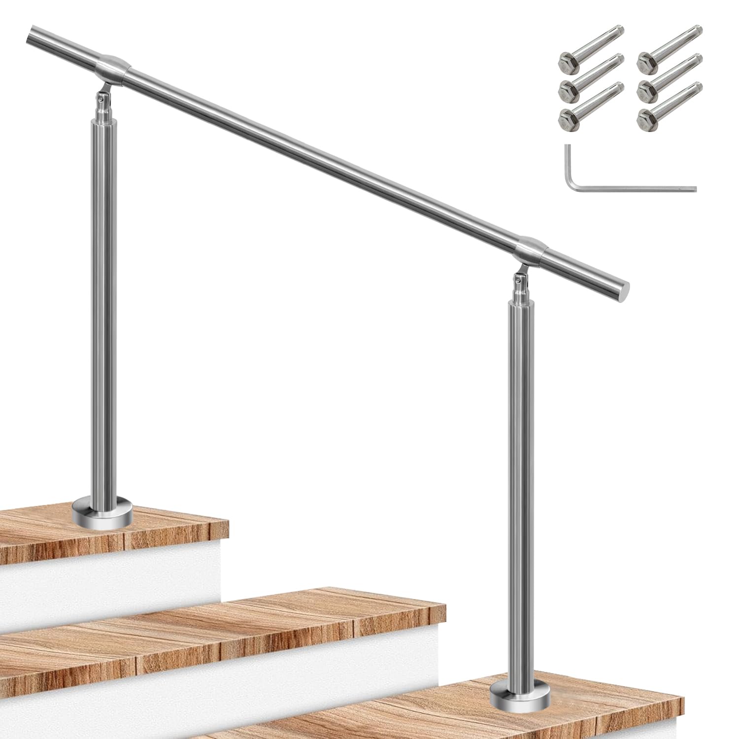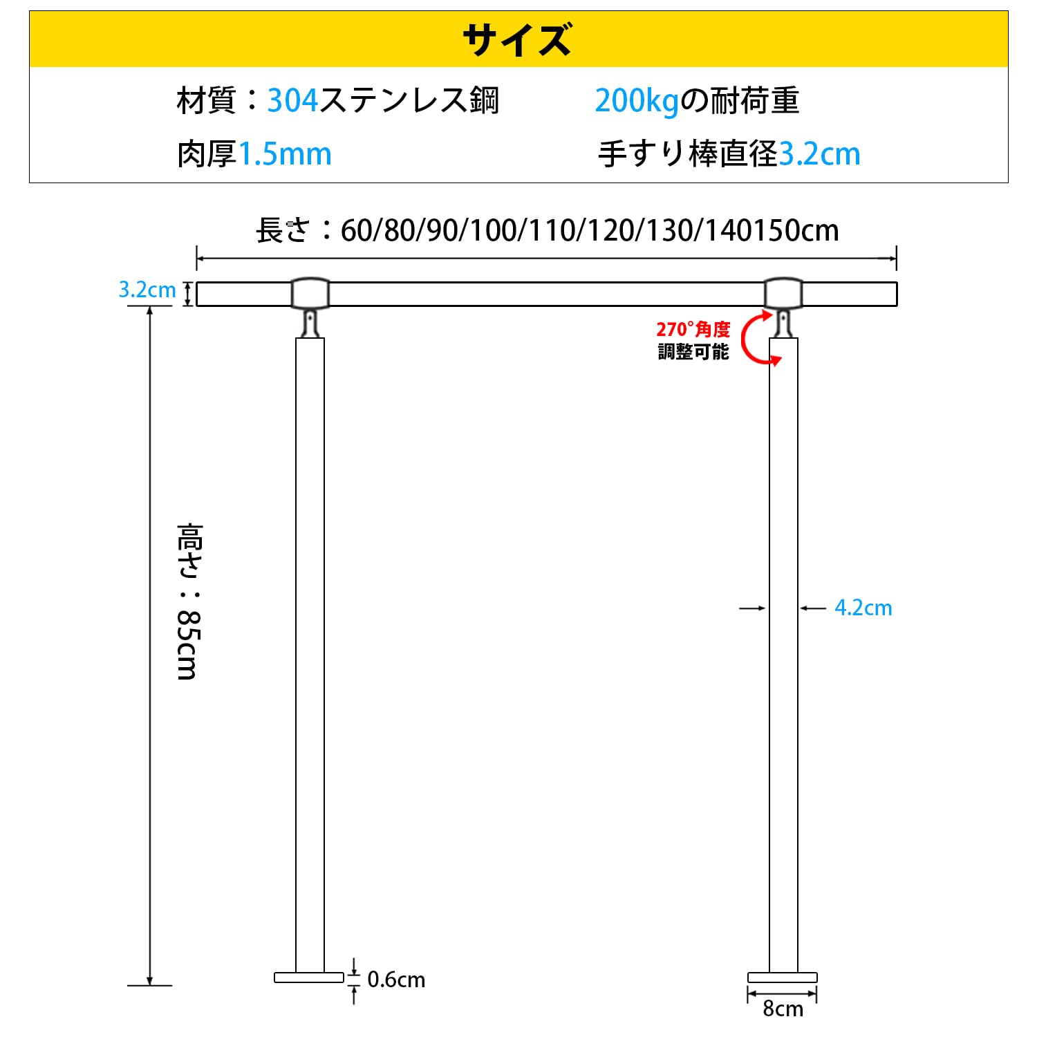 手すり 屋外 階段 ステンレス手摺 玄関 diy ステンレス鋼手すり 80cm-140cm 高い85/95cm 角度調整可能 簡単な取り付け 防錆 荷重200kg 高齢者、妊婦、子供、リハビリテーション患者 屋内屋外用 (シルバー, 長さ140cm)