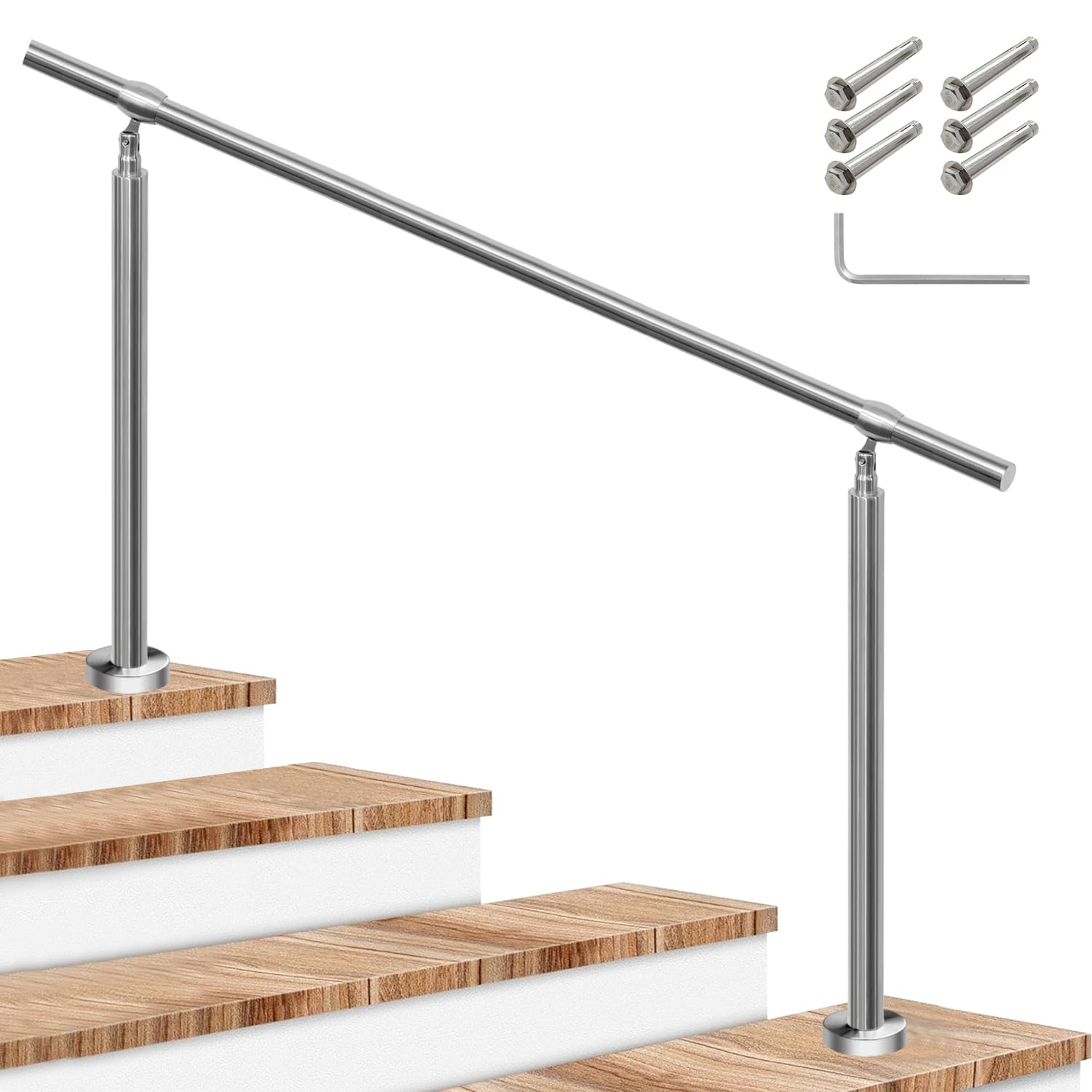 YHEYSMUX 80cm 屋外 階段 手すり DIY 無垢材の手摺り 玄関の手すり 製丸棒 304ステンレス鋼支柱 角度調整可能 屋内屋外用,銀