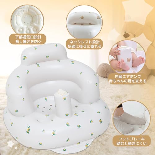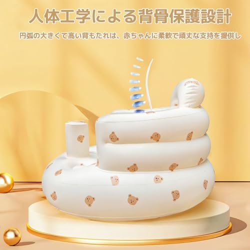 LIKENNY ベビーチェア 赤ちゃん ベビー用バスチェア 空気式 ふかふか ベビーソファー お座り練習チェア 折りたたみ 水切れ シャワーチェア 食事 お風呂用 収納便利 (かわいいクマ)