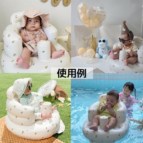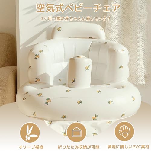 LIKENNY ベビーチェア 赤ちゃん ベビー用バスチェア 空気式 ふかふか ベビーソファー お座り練習チェア 折りたたみ 水切れ シャワーチェア 食事 お風呂用 収納便利 (オリーブ)