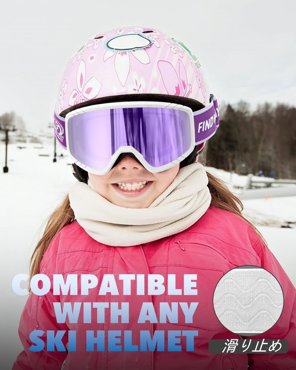 [Findway] スキーゴーグル キッズ スノーゴーグル 子供用 メガネ対応 OTG 曇り止め 広視野球面レンズ着脱可能 防風/防雪/紫外線防止 キッズスポーツ用ゴーグル 軽量と耐衝撃 適用3-14歳ボーイズガール