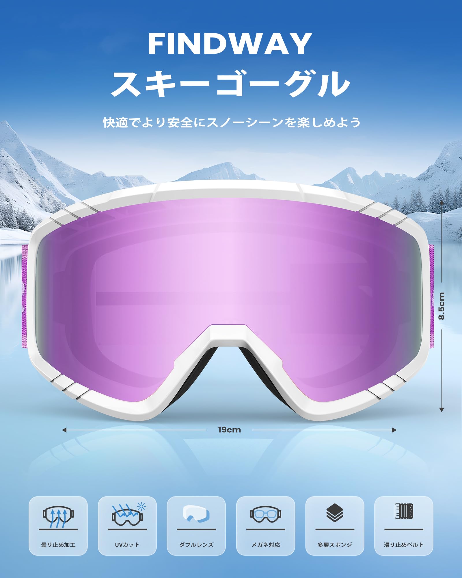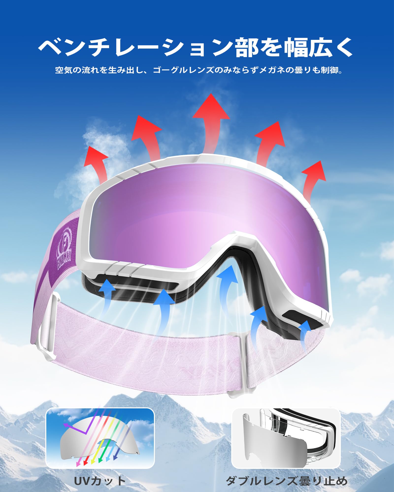 [Findway] スキーゴーグル キッズ スキーゴーグル 大人 スノーゴーグル メンズ スノボ ゴーグル 眼鏡対応 スノーボードゴーグル OTG 広視野 防風/防雪/曇り止め UVカット ヘルメット対応 軽量と耐衝撃