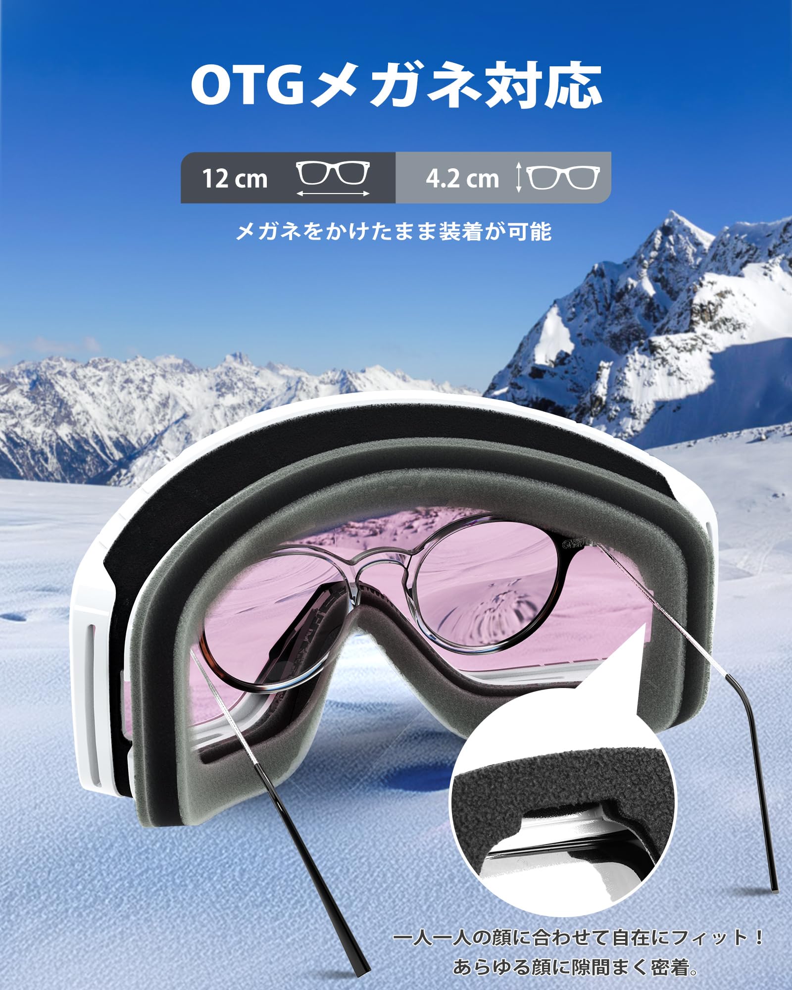 [RIOROO] スキーゴーグル スノボ ゴーグル OTGメガネ対応 レディース メンズ スノーボード ゴーグル 広視野 球面レンズ UV400保護 曇り止め 紫外線防止 防風/防雪 柔軟 耐衝撃 ヘルメット対応 晴れ/曇り/全天候対応 ジュニア 大人男女兼用