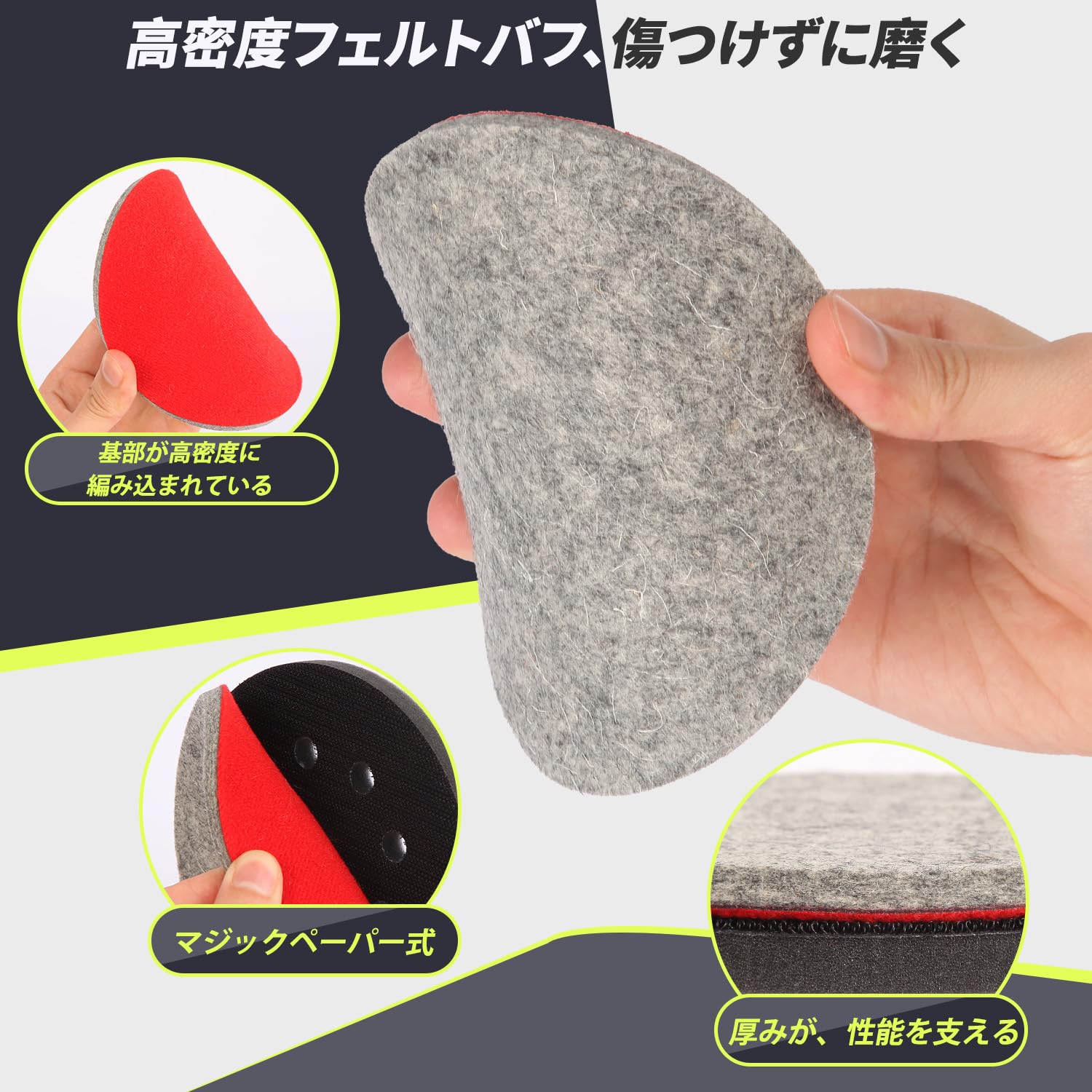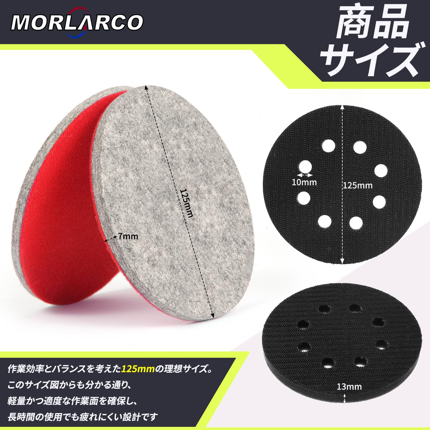 MORLARCO フェルトバフ ポリッシャー バフ 125mm 4個セット マジックペーパー式 付属研磨パッド 油膜 ガラス磨き 車磨き用 ポリッシャーに適しています