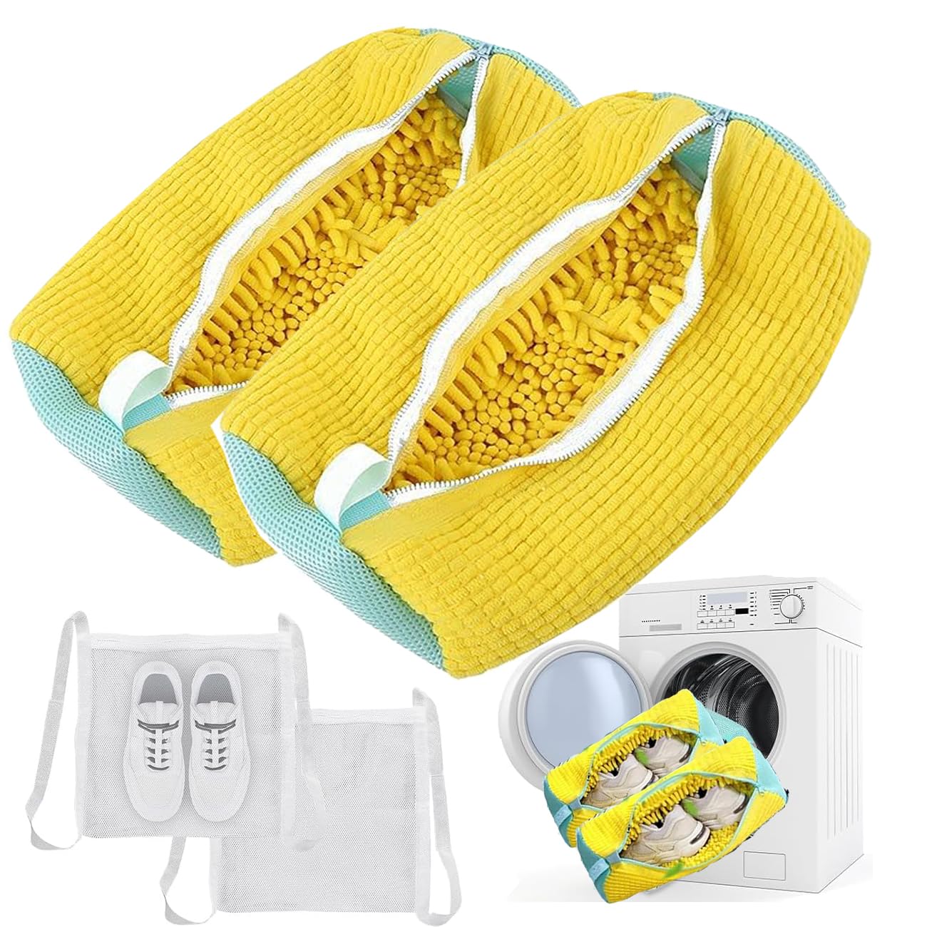 Morsut 靴 洗濯ネット 靴用洗濯ネット4枚セット大容量設計 清潔力が6倍にアップ シューズ用 靴洗いネット 洗濯ネット 靴洗濯機 上履きスニーカー 靴の損傷を防ぐ 型崩れ防止 (yellow)