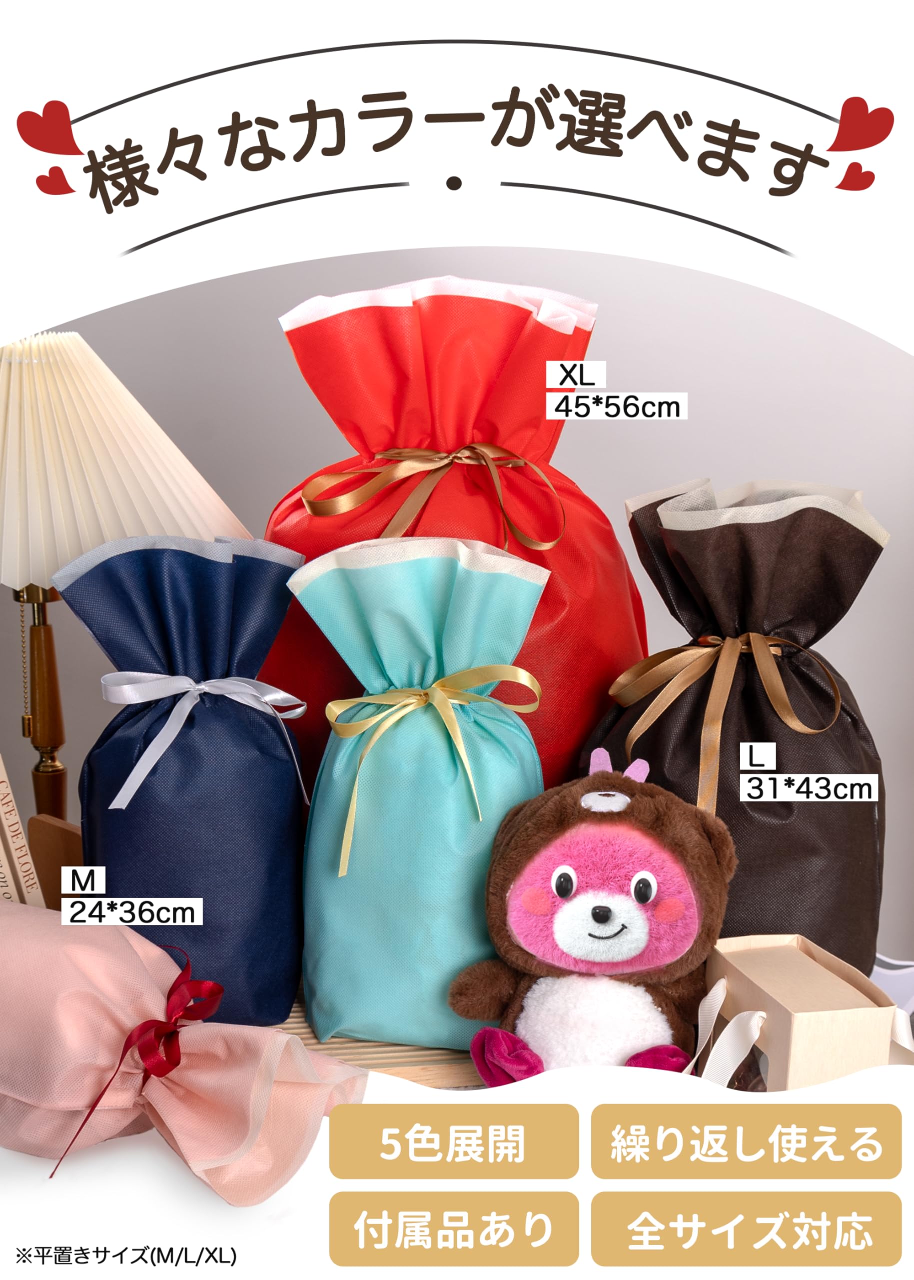ラッピング プレゼント 袋 ギフトバッグ 【Poco'ce掲載・ふんわり不織布·リボン付き·3サイズ×5色展開】 ラッピング 袋 小 大 特大 ギフト袋 贈り物 人気 おしゃれ 収納 お祝い 記念日 結婚式 母の日 父の日 誕生日 バレンタイン クリスマス