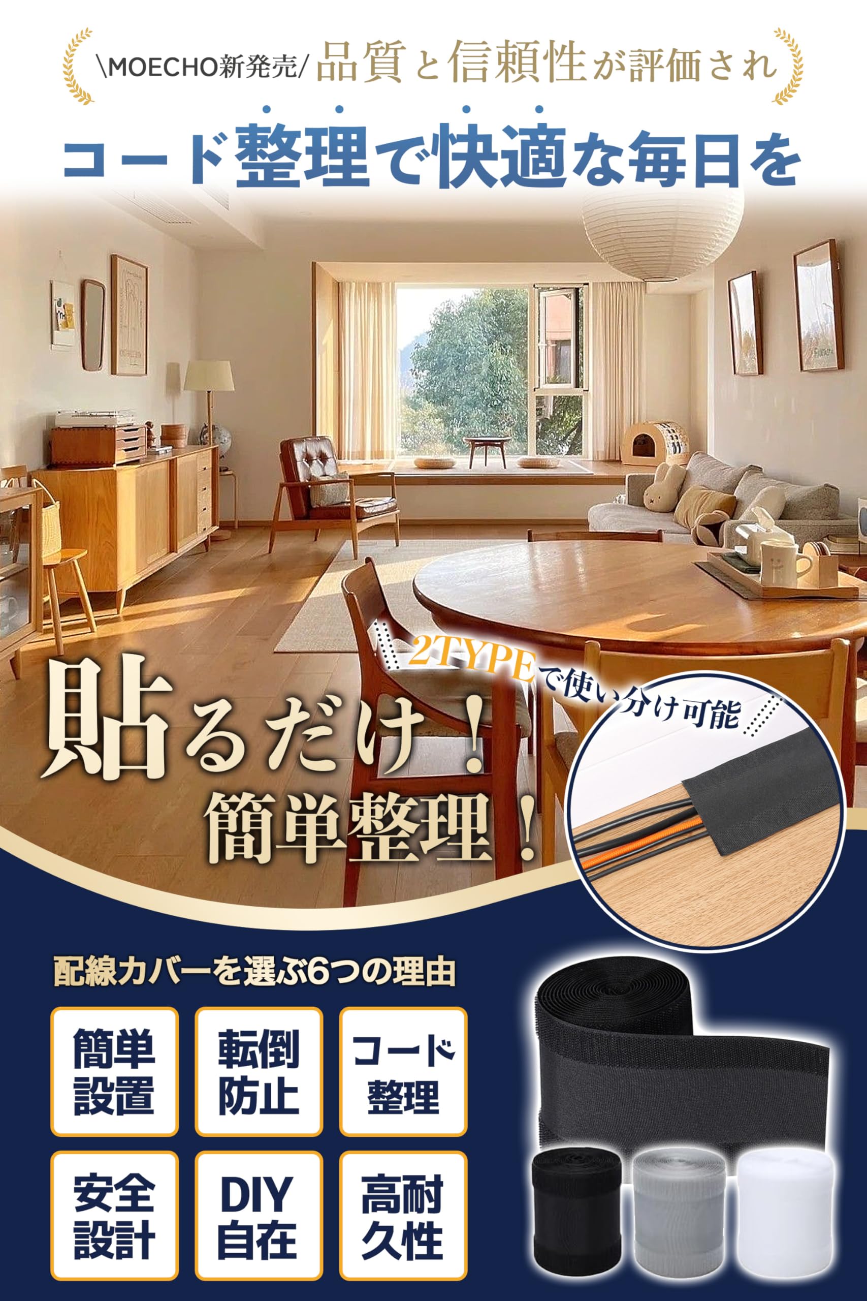 配線モール 配線隠し ケーブルカバー 配線カバー PVC 柔らかい 難燃素材 難燃素材 燃えるのを防ぐ/通気性/絶縁/自己接着/完璧なフィット感 配線モール 両面テープ ケーブル 床 カバー粘着式 溝の幅を広げる より多くの電線を収容する など配線整理用 屋外環境に最適 (8M)