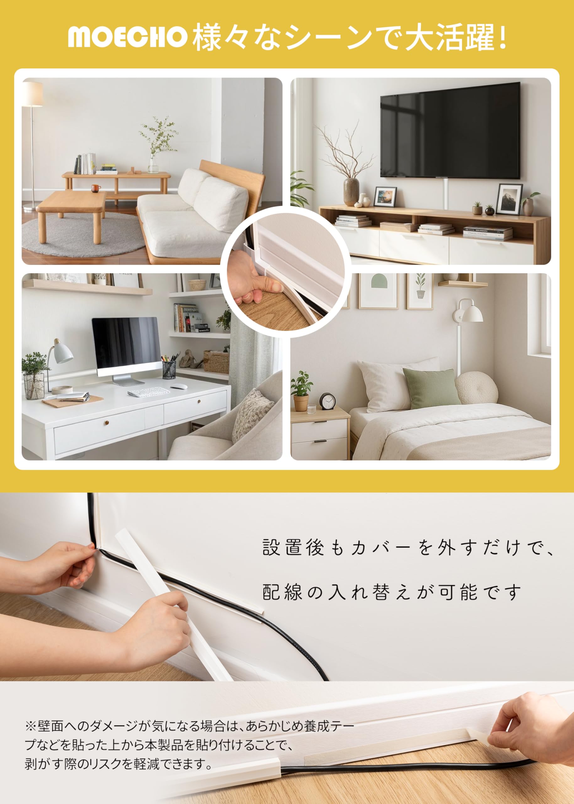 配線モール 配線隠し ケーブルカバー 配線カバー PVC 柔らかい 難燃素材 難燃素材 燃えるのを防ぐ/通気性/絶縁/自己接着/完璧なフィット感 配線モール 両面テープ ケーブル 床 カバー粘着式 溝の幅を広げる より多くの電線を収容する など配線整理用 屋外環境に最適 (3M)