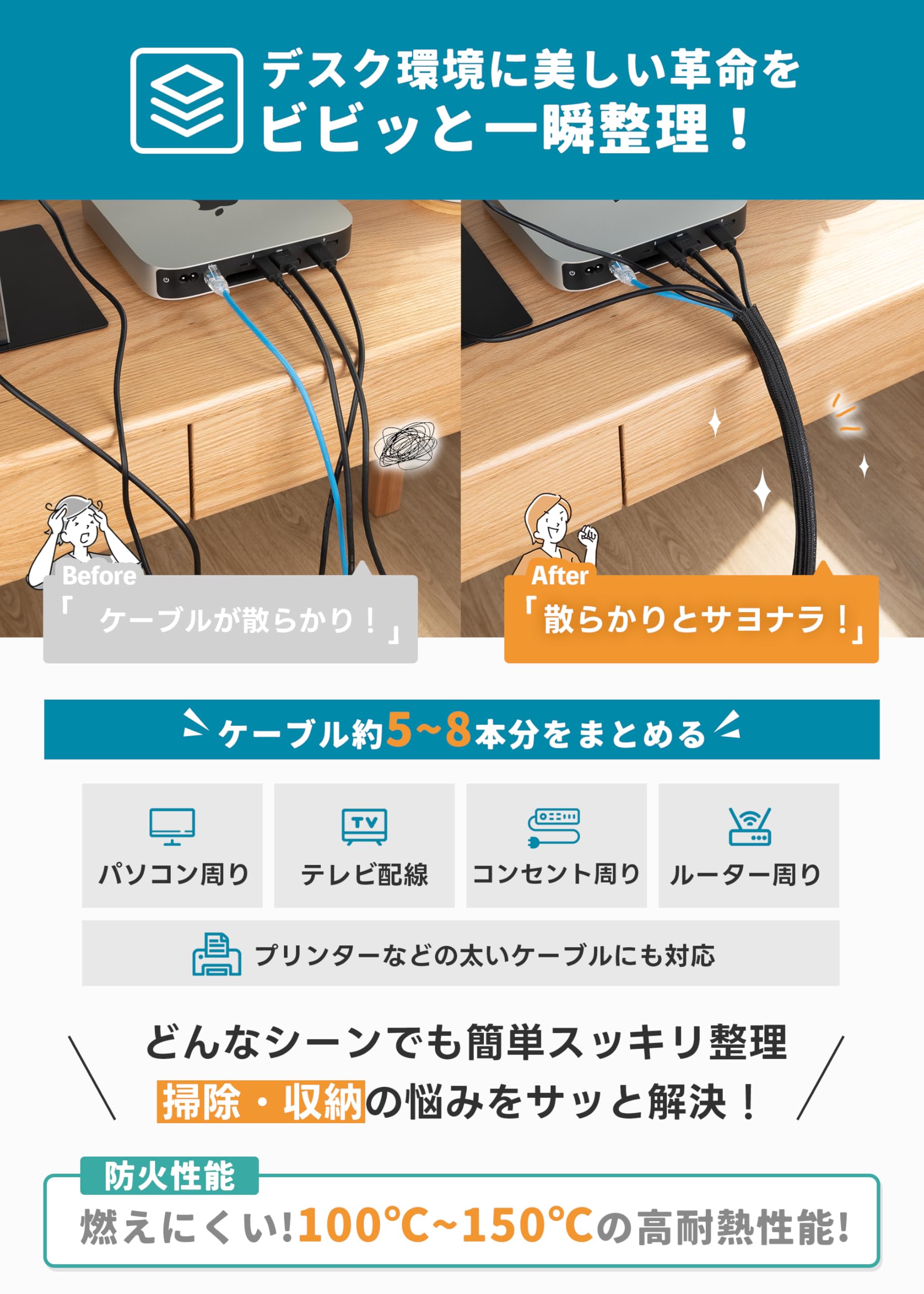 ケーブル収納スリーブ ケーブルスリーブ 配線カバー 【全長6M·20mmまで広がる·防火性能アップ·ペット噛み防止】 配線隠し ケーブルカバー スリーブ コード ケーブル まとめる ケーブルチューブ 配線まとめ 織物ケーブルカバー ケーブル 収納 保護 束ねる 配線 整理 隠し カバー テレビ/コンピューター/自動車修理用 PET素材 DIY切断可能 絶縁 耐熱 防塵 耐摩耗性