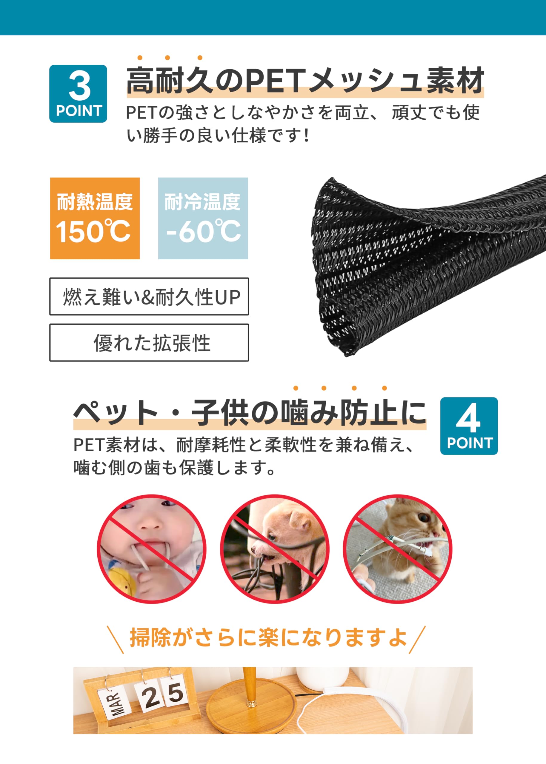 ケーブル収納スリーブ ケーブルスリーブ 配線カバー 【全長3M·20mmまで広がる·防火性能アップ·ペット噛み防止】 配線隠し ケーブルカバー スリーブ コード ケーブル まとめる ケーブルチューブ 配線まとめ 編組ケーブルカバー ケーブル 収納 保護 束ねる 配線 整理 隠し カバー テレビ/コンピューター/自動車修理用 PET素材 DIY切断可能 絶縁 耐熱 防塵 耐摩耗性