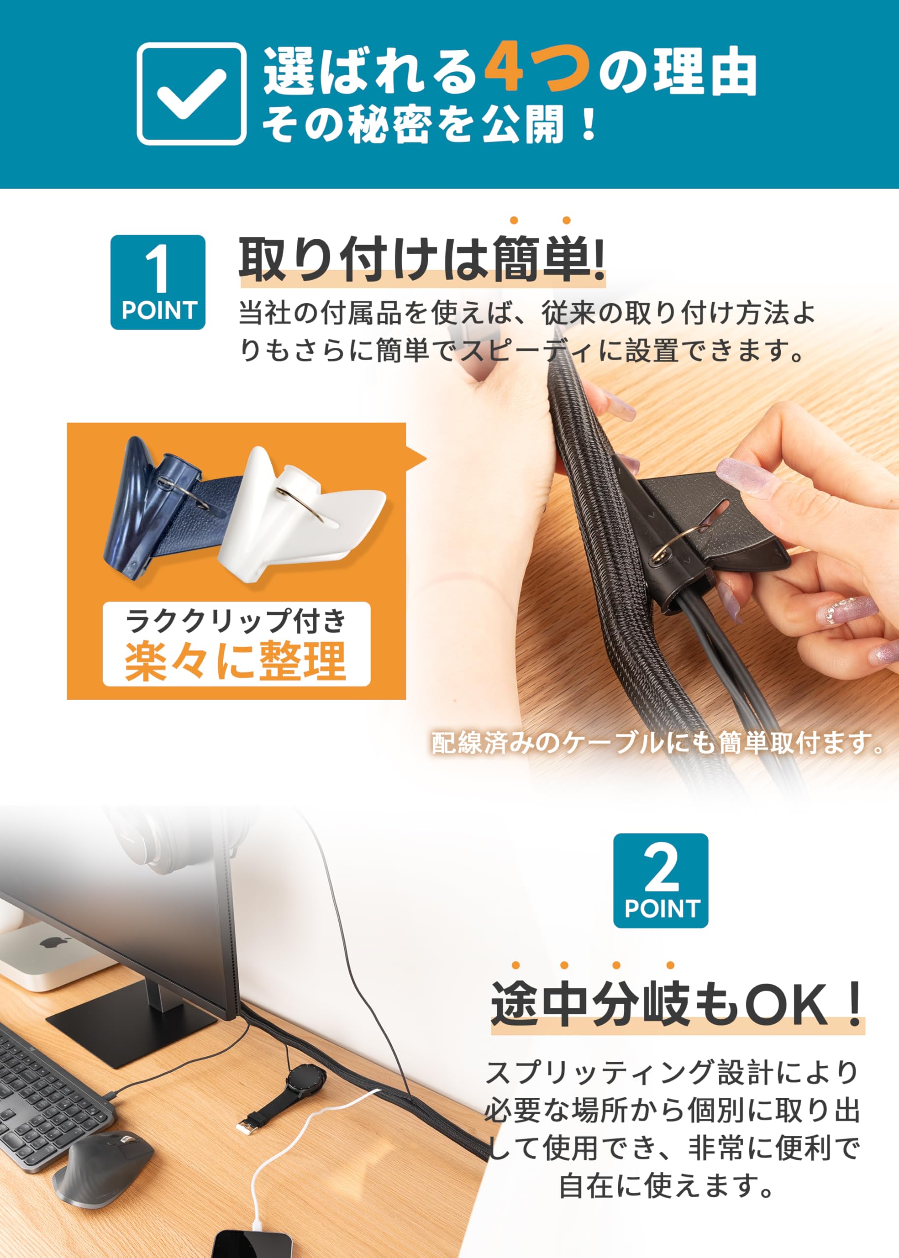JOTO [4個セット]ケーブル収納スリーブ 長さ約50cm 弾性 TV/パソコン/電器など ケーブルオルガナイザー 家庭用/オフィス用 ‐ 4点
