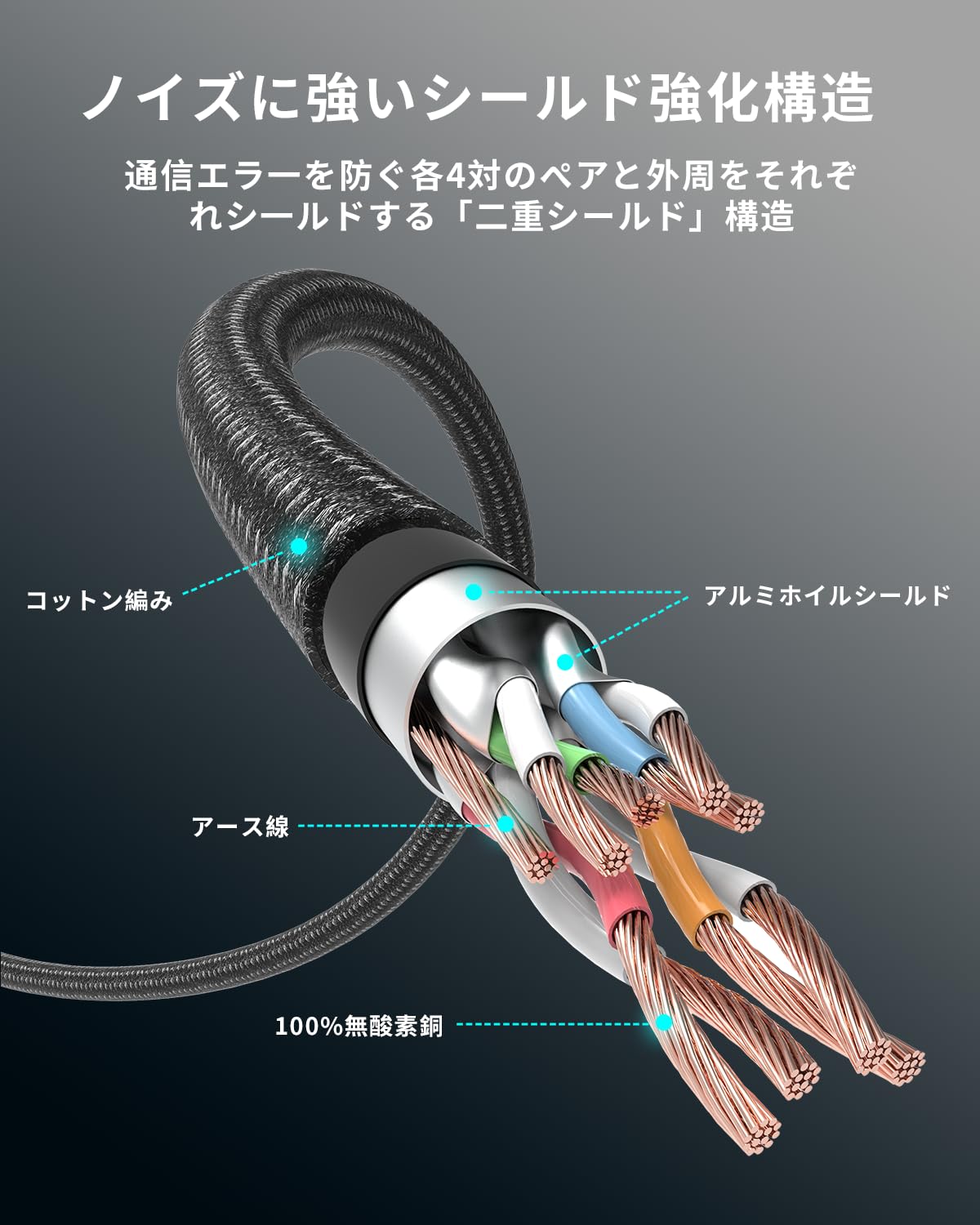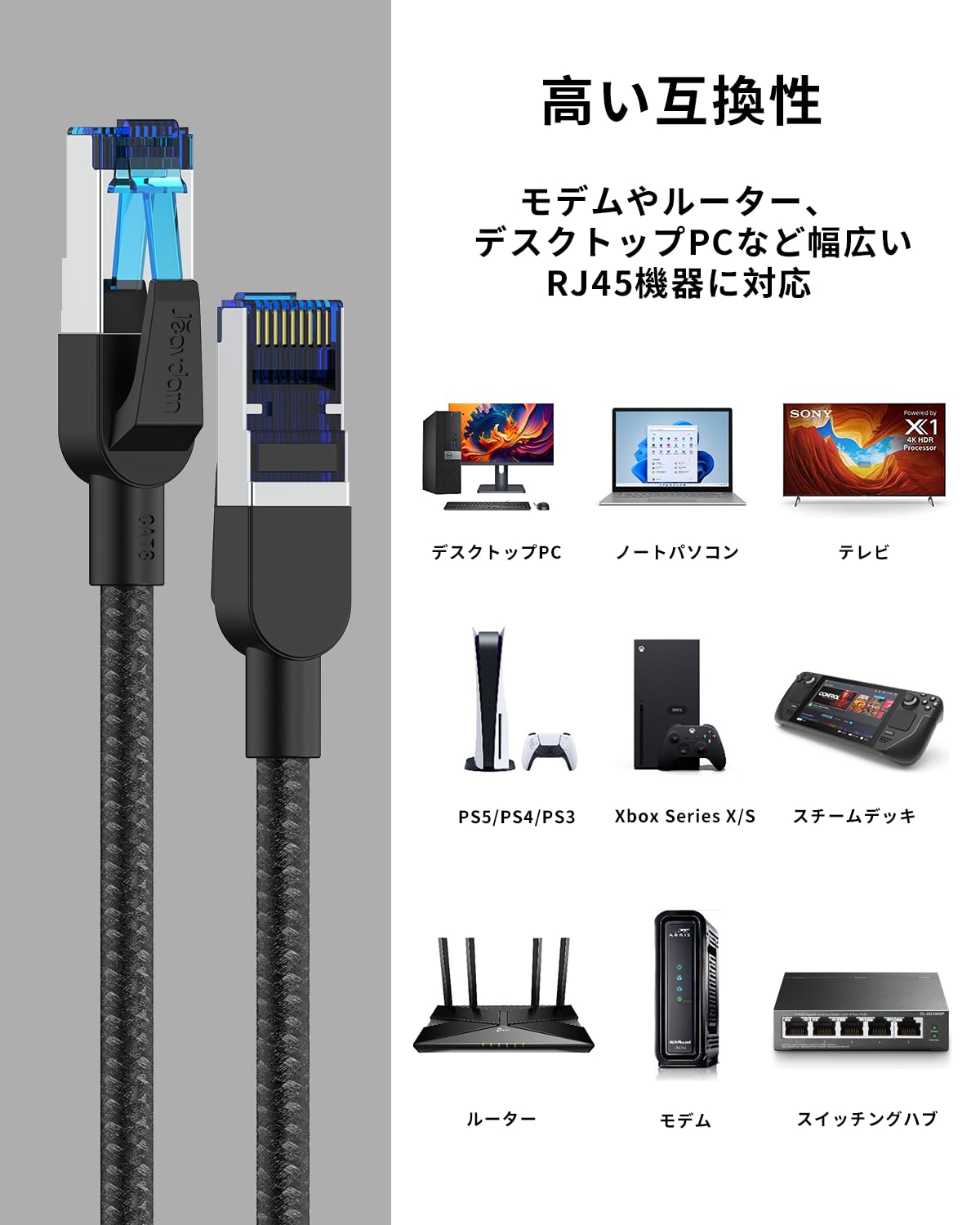 屋外用 LANケーブル 50m PoE対応 CAT6 Soohut LLDPE被覆 PoE防犯カメラ対応 ランケーブル 屋外lan配線 高耐久ポリエチレン被覆 LANケーブル 爪折れ防止 屋外用 (ブラック, 50m)