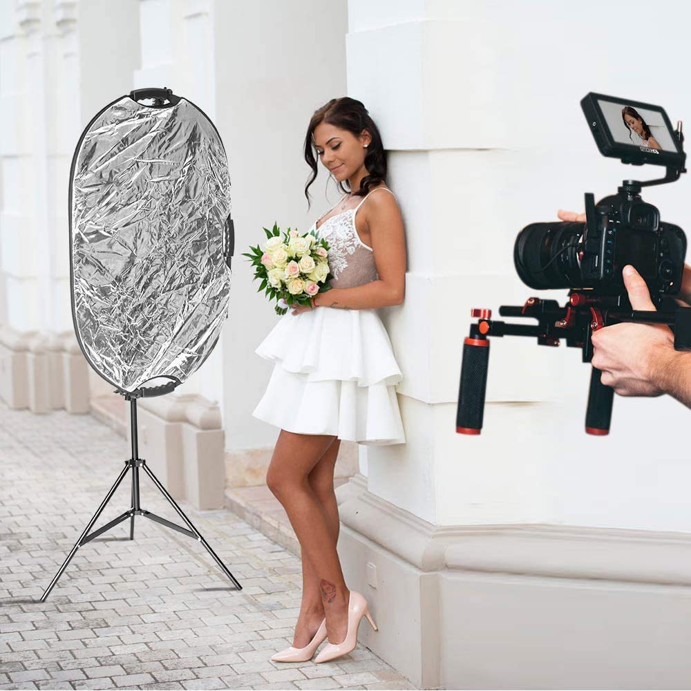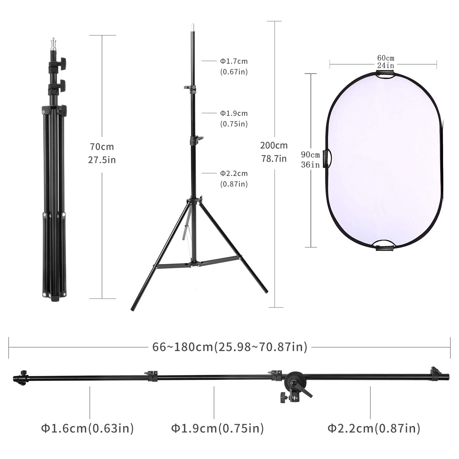 Selens 撮影用 5-IN-1丸レフ板80cm+リフレクターホルダー+2Mライトスタンド 撮影スタジオキット レフ板 スタンド 伸縮可能ブームアーム 360°回転可能 ホルダー長さ66~180cm スタンド高さ70~200cm 各サイズレフ板に対応