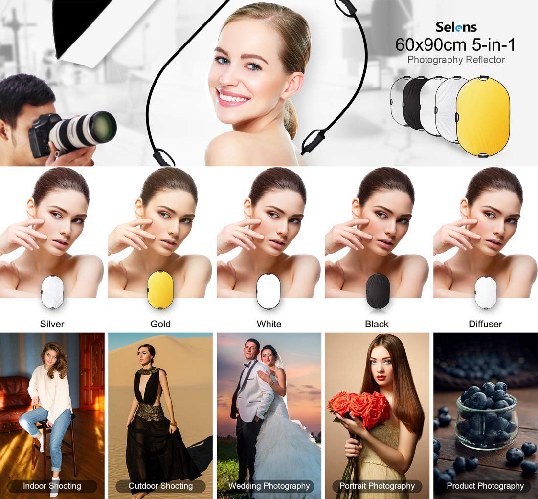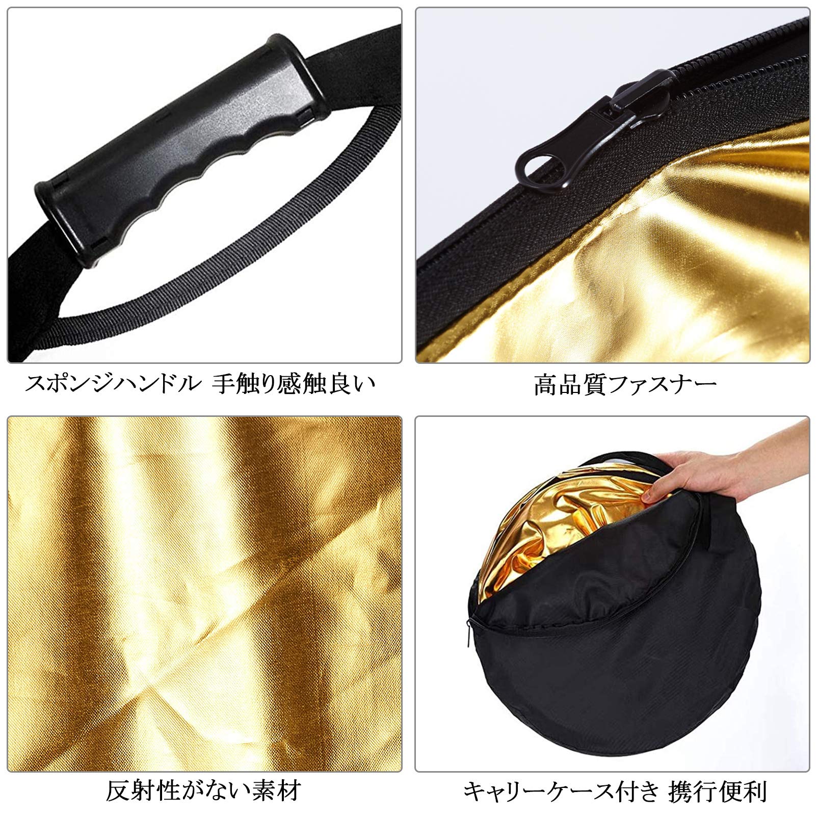 Selens 撮影用 5-in-1 レフ板 クリップ付き 80cm 折りたたみ式 丸レフ板 スタジオレフ板 反射板 金/銀/白/黒/半透明 収納ポーチ付き 補光 スタジオ撮影/写真/人物撮影に適用