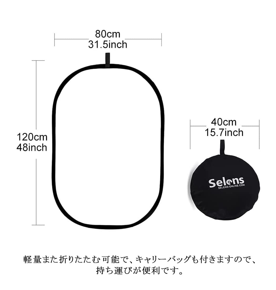 Selens 5-IN-1 撮影用 楕円レフ板 80x120cm ハンドル付き スタジオレフ板 折りたたみ可能 (1枚で5色対応-金/銀/白/黒/半透明) [並行輸入品]