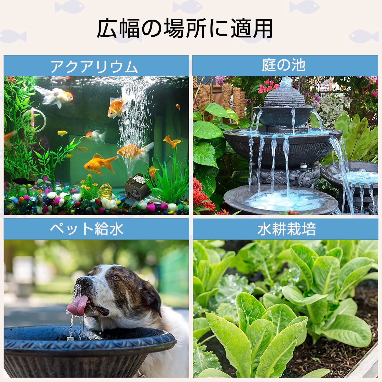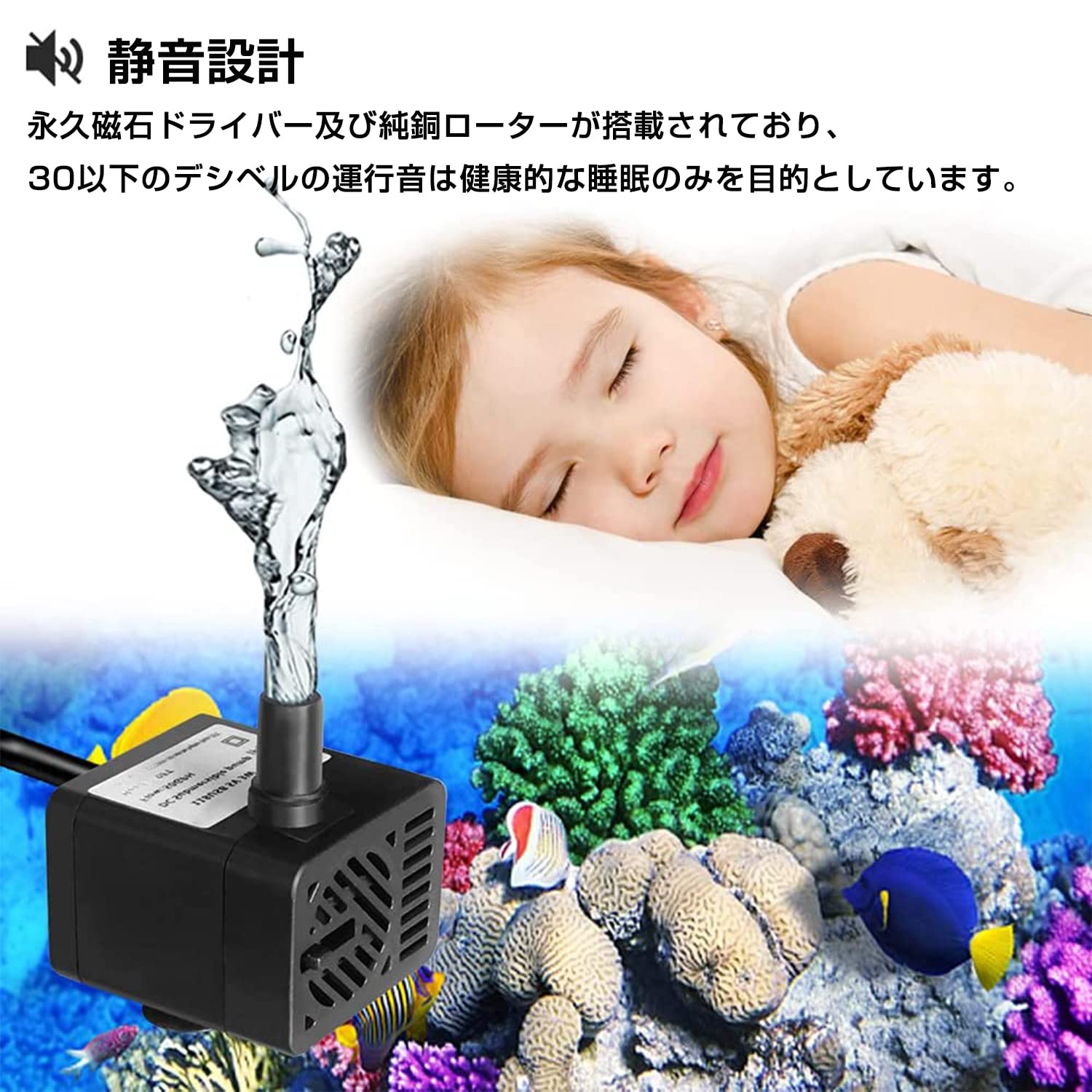 水中ポンプ 小型 排水ポンプ 水槽用 USB給電 潜水 静音 吐出量200L/H 揚程0.4-1.5M 水 調整可能 循環ポンプ 給水 水耕栽培 水族館水換え 養殖場適用 ブラック