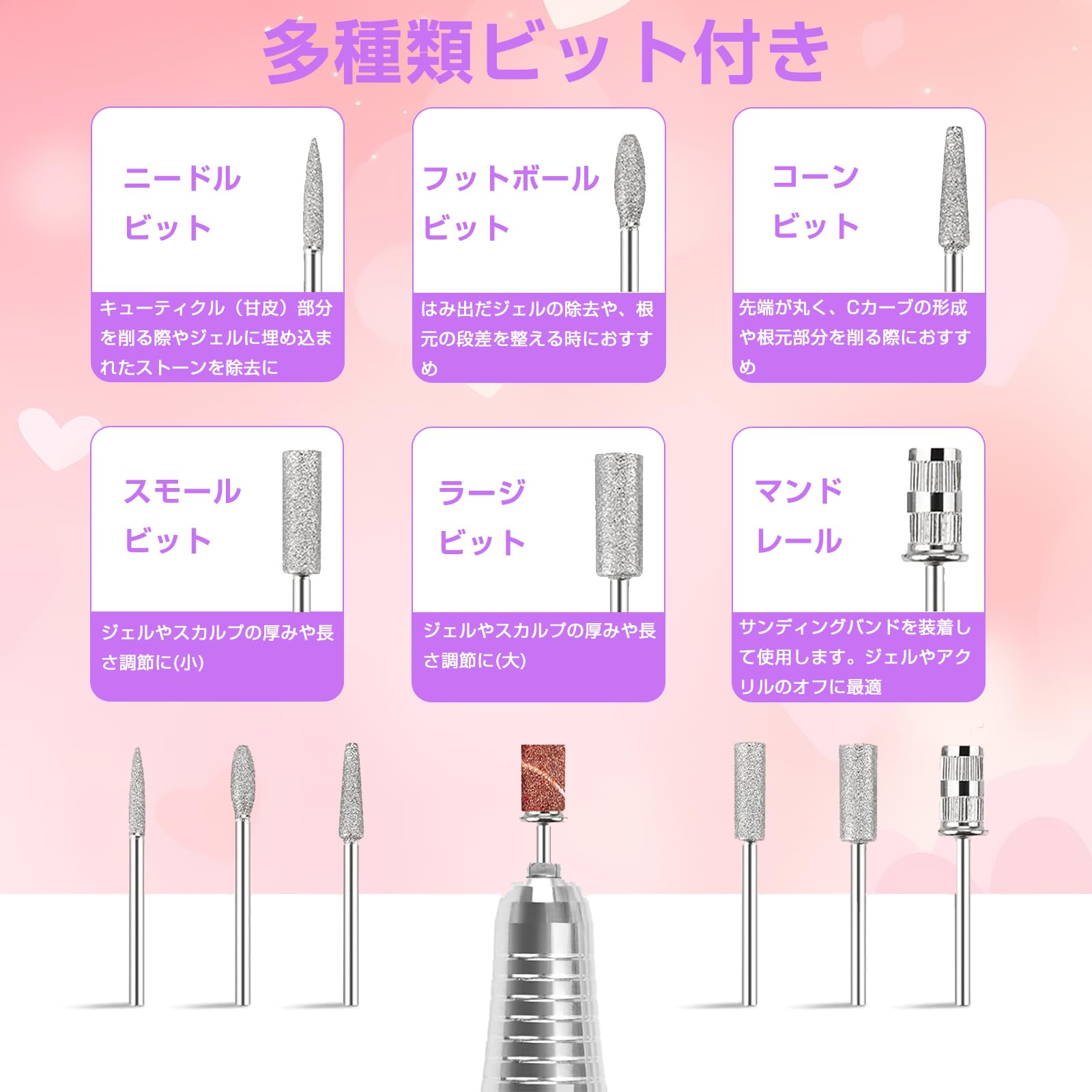 ネイルマシン ビット 電動ネイルマシン 爪磨き ネイルケアセット ネイルマシン プロ用 マニキュア対応 ネイルドリル 正逆回転 無段階変速 セルフオフ