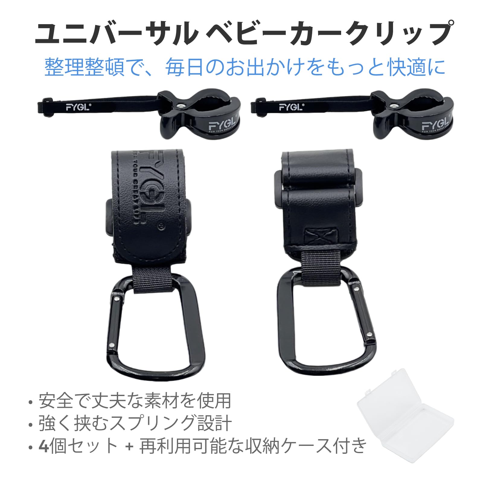 FYGLのブランケットクリップセットは、育児中の様々な「留めたい」「吊るしたい」を叶える多機能アクセサリーです。【主な特徴】強力ABSクリップ:最大4cmまで開く強力なクランプ力で、厚手の毛布もしっかりキャッチ。一端の小さな穴にリボンやストラップを通せば、おしゃぶりやおもちゃのペグとしても活用できます。大容量PUレザーフック:スッキリとしたデザインでありながら、大きく頑丈な登山扣と広い接地面で、荷物を安定して吊るすことが可能。ベビーカーのフレームに取り付けて、ママバッグや買い物袋をかけても滑り落ちにくい設計です。調整可能な延長ストラップ:付属の布製ストラップを使えば、ベビーベッドの柵に毛布を固定してズレ防止に。また、ベビーカーの太いフレームや車のヘッドレストへの取り付けも簡単です。面ファスナーで長さ調節が自由なのが魅力です。ベビーカーでのお散歩はもちろん、自宅のベビーベッドでの掛け布団固定、ドライブ時の車内でのタオル掛け、お出かけ先での荷物整理まで、オールシーズン・多彩なシーンで活躍します。【付属の透明収納ケースについて】すべてのパーツをまとめて収納できるクリアケース付き。中身が一目で分かり、かばんの中で他の物を傷つける心配もなく、清潔に保管できます。育児グッズをすっきり整理したい方に特におすすめです。FYGLは、毎日の育児を少しでも楽しく、便利にするアイテムをお届けします。