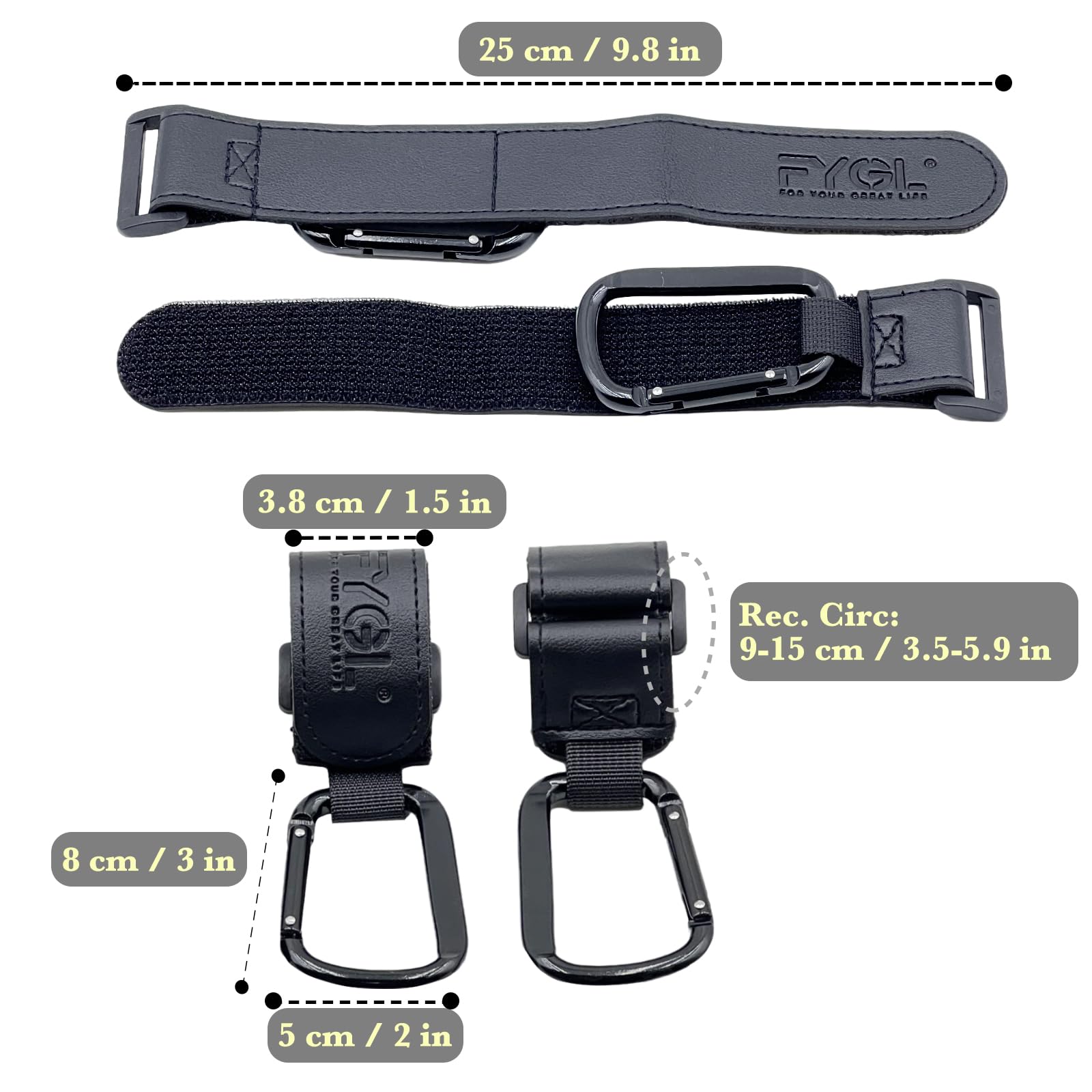 FYGL ブランケットクリップ セット ベビーカー用 2個ABSクリップ+2個PUレザーフック付き 延長ストラップと透明収納ケース付属 6点セット 落下防止 - ブラック
