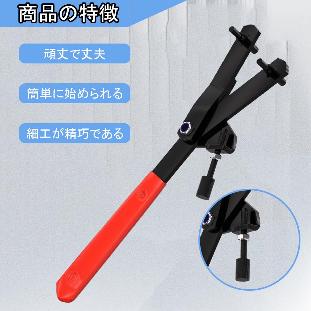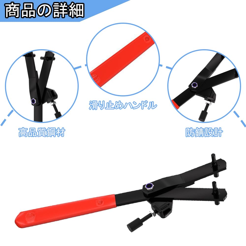 【分解作業の悩みを解消】バイク専用に設計された回転防止ロックツール。デュアルピン構造で多様な車種のコア部品に確実に固定し、整備作業中の空回りを完全に防止。安全で安定した正確な操作を実現します。