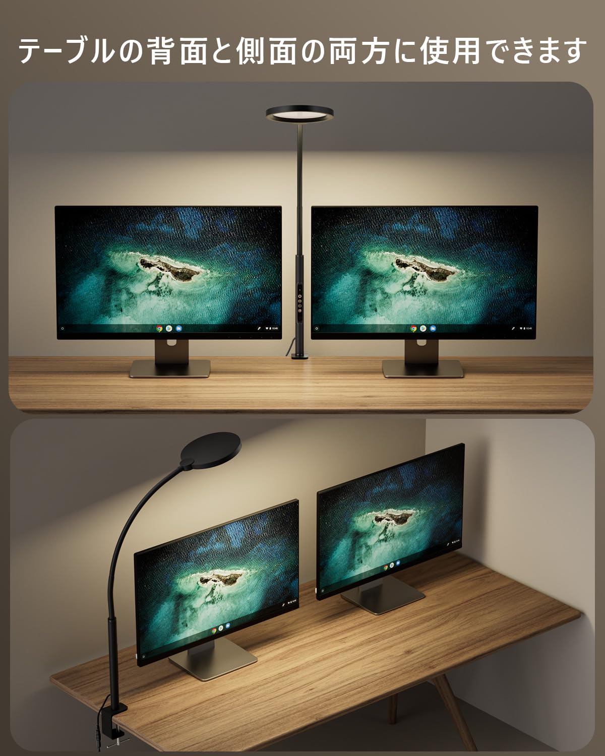 Rakuminyou デスクライト LED ダブルヘッド 電気スタンド クランプ式 卓上ライト 13W高輝度 3色温度・無段階調光 360°回転可能 クリップ 簡単操作 机用 子供 仕事用 寝室用 目に優しい読書灯 (黒)