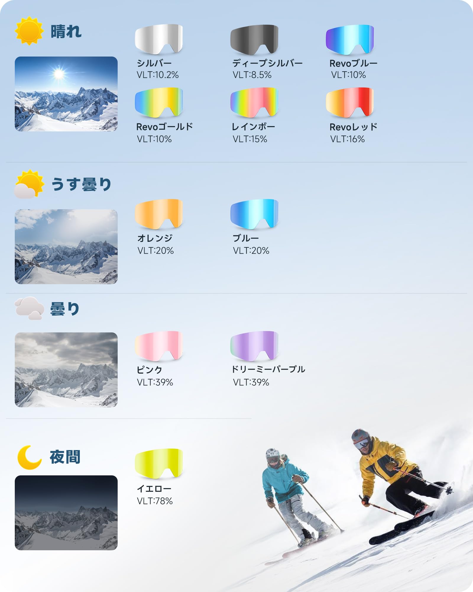 [Odoland] スノーゴーグル + ナイター向きレンズ 磁気レンズ交換式 2層球面レンズ OTGメガネ対応スノーボードゴーグル 曇り止め 超広視野 UV400 通気 防風 防塵 防雪 軽量 耐衝撃 男女兼用