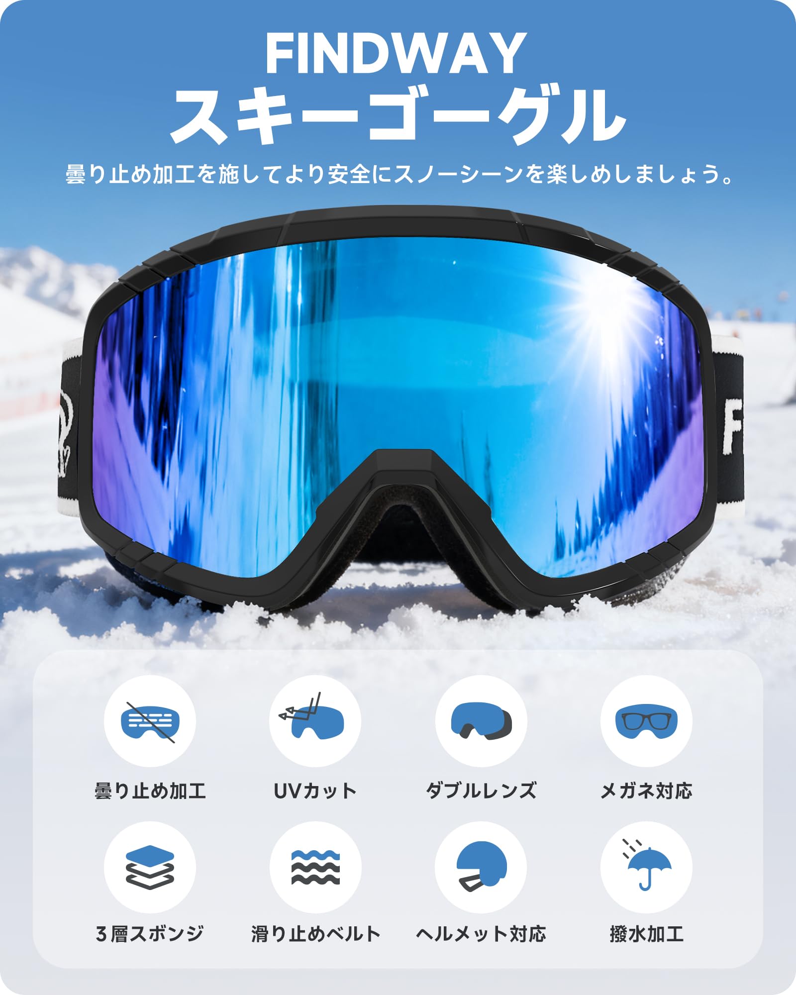 [Findway] スキーゴーグル キッズ スキーゴーグル 大人 スノーゴーグル メンズ スノボ ゴーグル 眼鏡対応 スノーボードゴーグル OTG 広視野 防風/防雪/曇り止め UVカット ヘルメット対応 軽量と耐衝撃