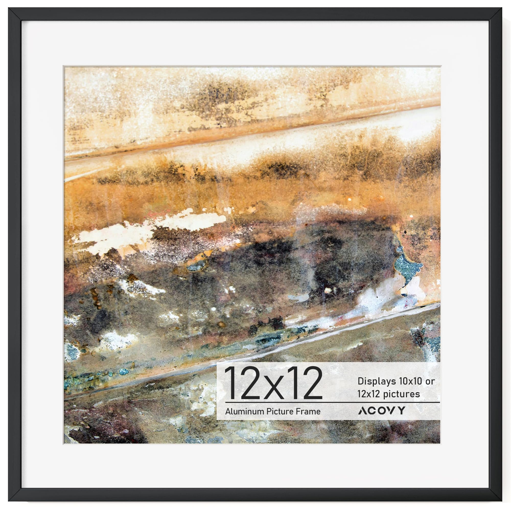 Acovy アルミフォトフレーム マット付き アルミニウムメタルフォトフレーム 強化ガラス付き 卓上ディスプレイまたは壁取り付け用 (12x12、ブラック)