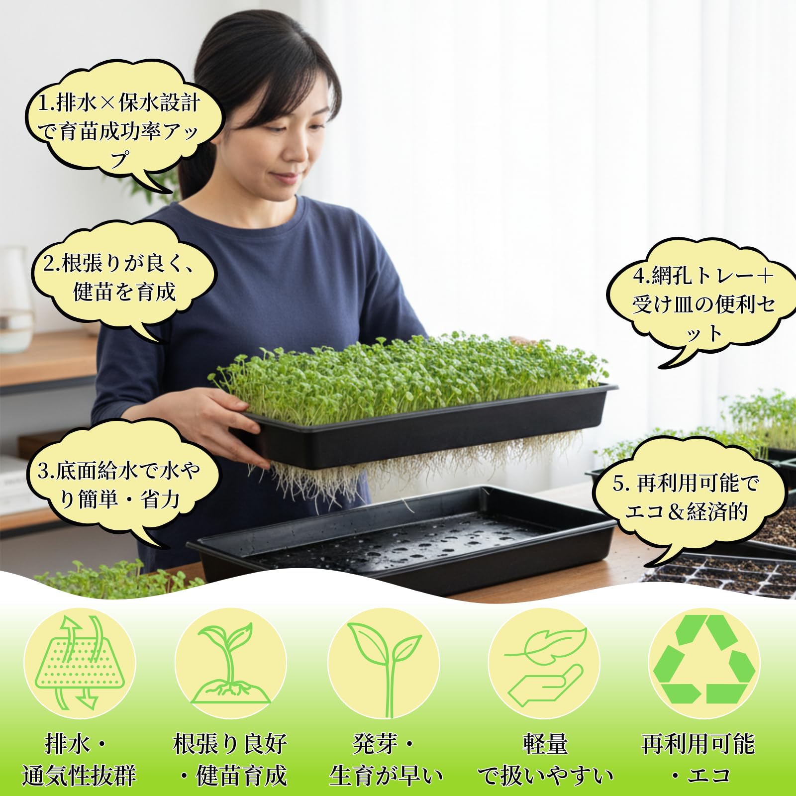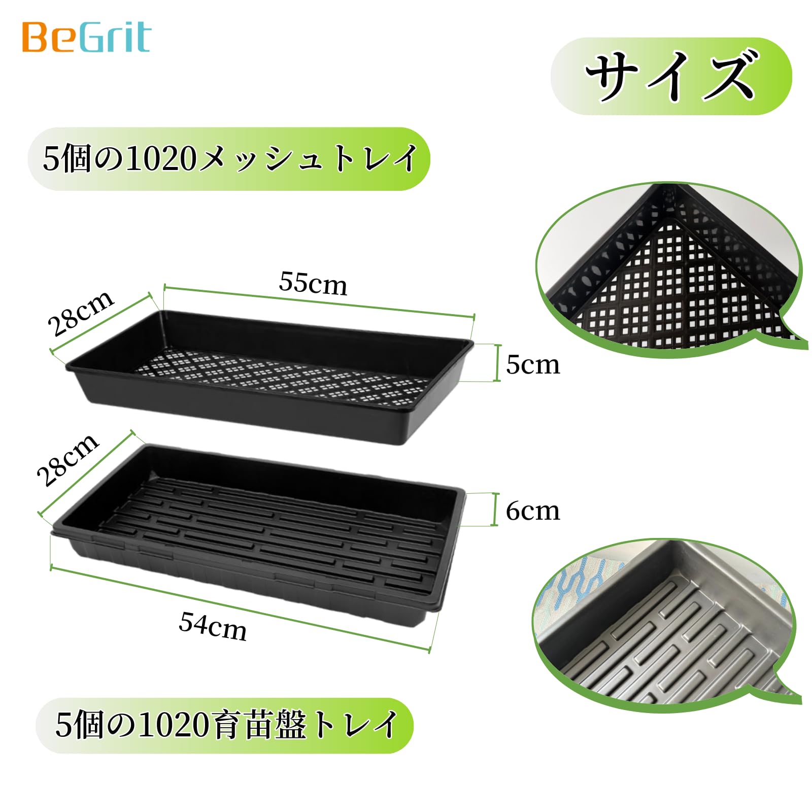 BeGrit 1020育苗ポット 育苗箱 育苗トレー穴なし5枚パック+メッシュ底トレー5枚パック多肉植物輸送ポット家庭園芸管理用(合計10パック)ブラック