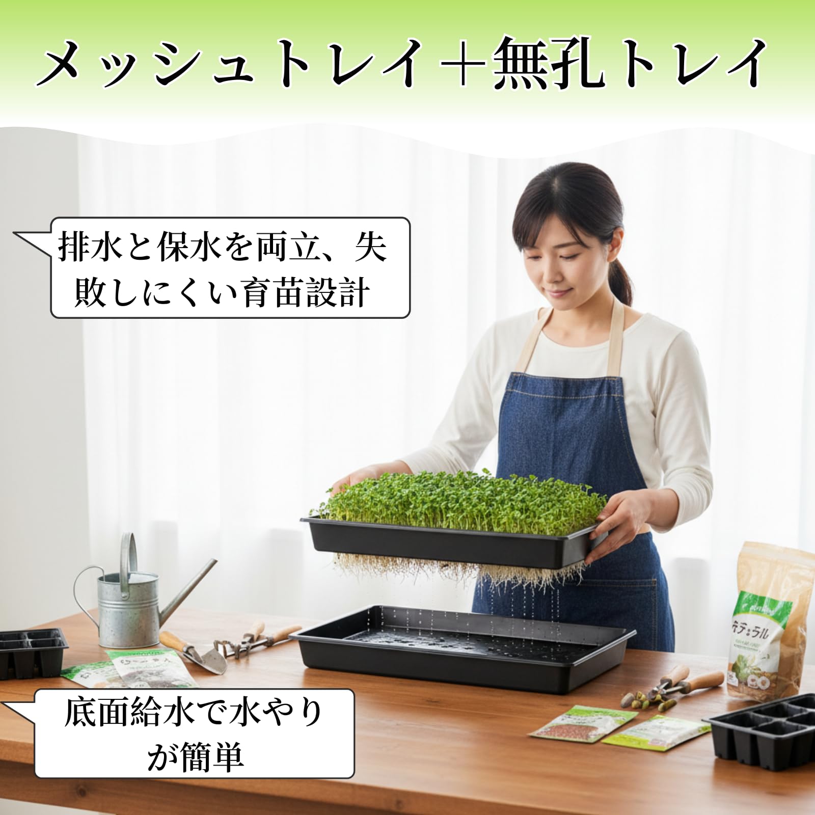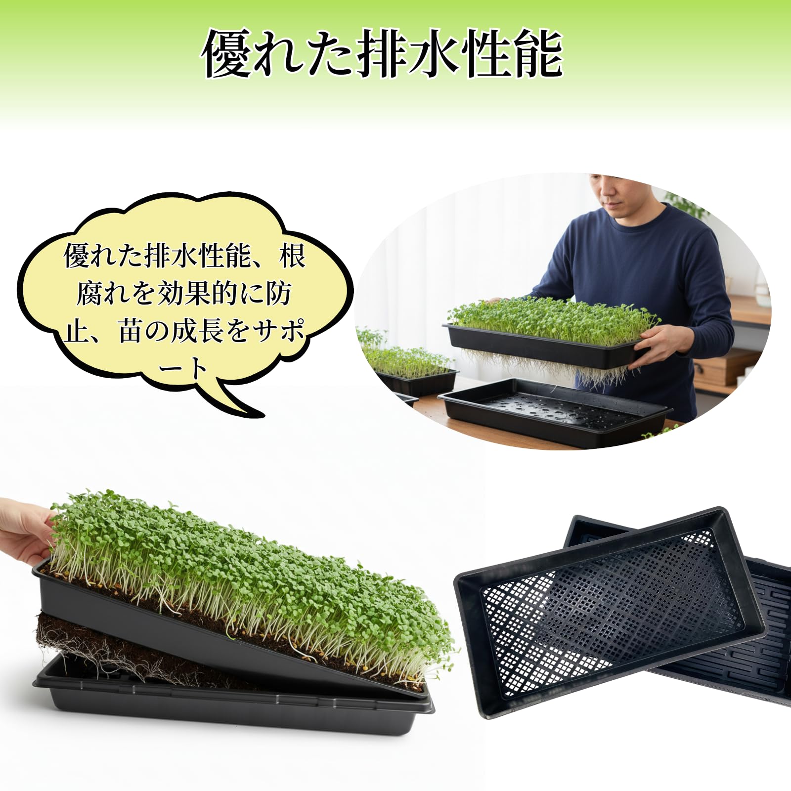 BeGrit 1020 苗ポット 37.5 X 30 X 7cm 苗トレイトレイ 排水穴なし マイクログリーン 成長トレイ 苗トレイ 排水穴なし ガーデンシード スターター 植物育成トレイ 5パック