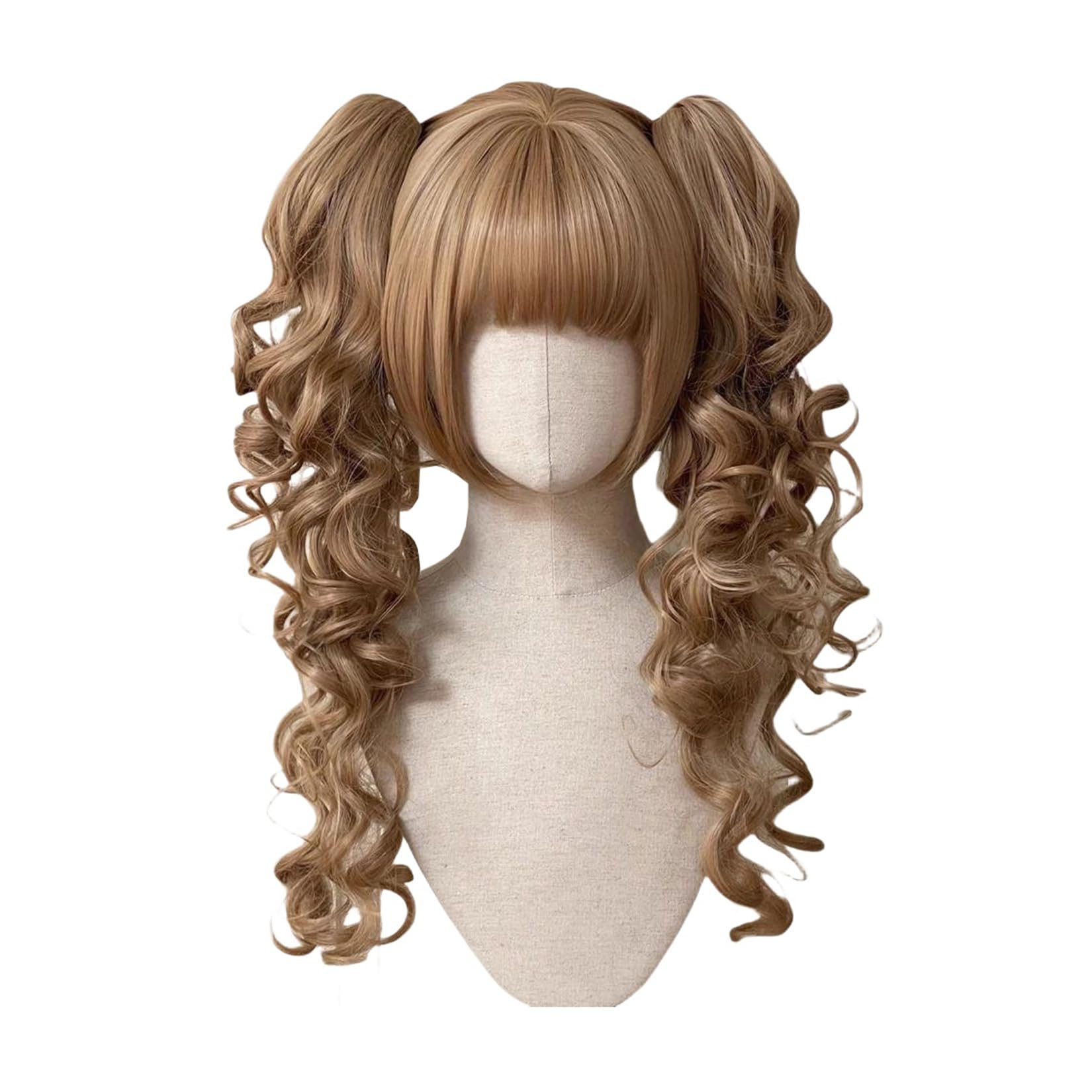 [ボズとガルヤ] 姫カット 巻き髪 ロリータウィッグ ツインテール ぱっつん かつら 原宿風 lolita風 ゆめかわいい GAL系 耐熱 小顔 茶髪 宮殿風 貴族風 金髪 お姫 森ガール パーティー 学園祭 文化祭 (茶色)