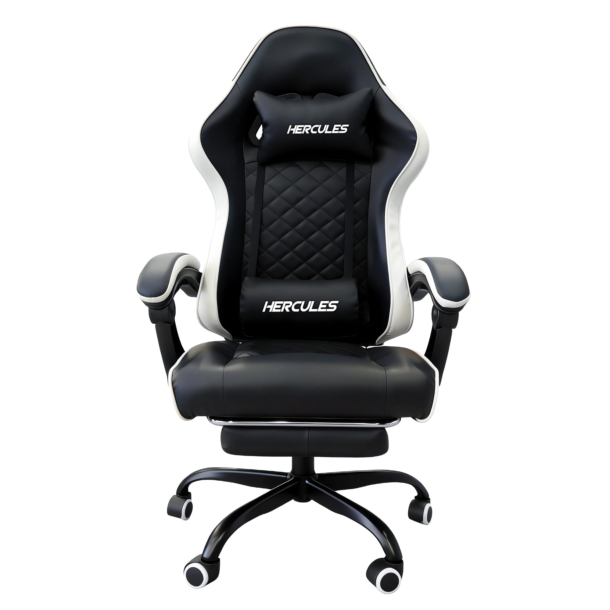 HERCULES ゲーミングチェア 高級PUレザー リクライニング90-130度 フットレスト付き 昇降アームレスト ヘッド&腰サポート ブラック