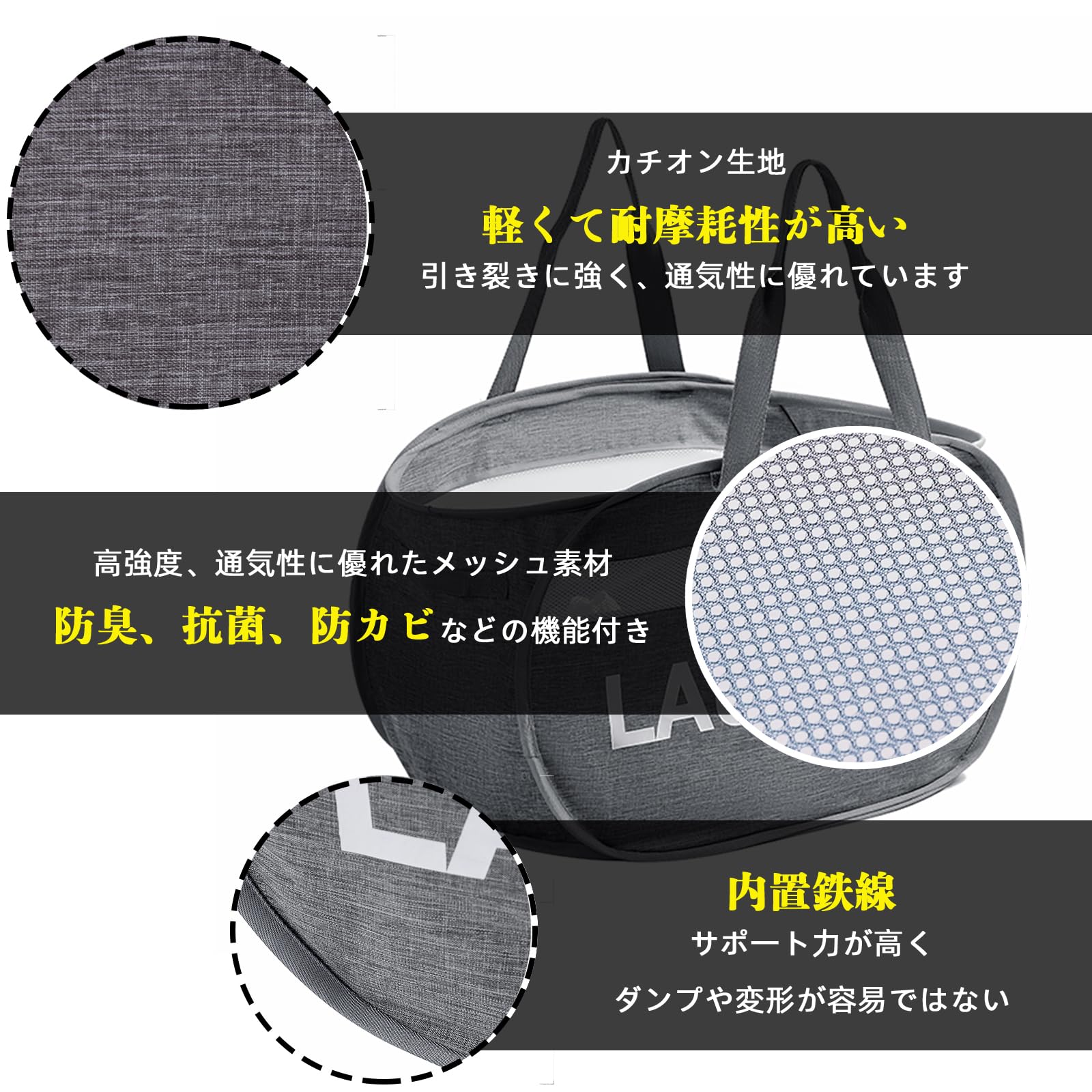 YOUDENOVA ランドリーバスケット 洗濯カゴ 折りたたみ メッシュ 省スペース 大容量 80L ハンドル付き ランドリーバッグ ランドリーボックス 収納 持ち運び可能(ブラック·3セット)
