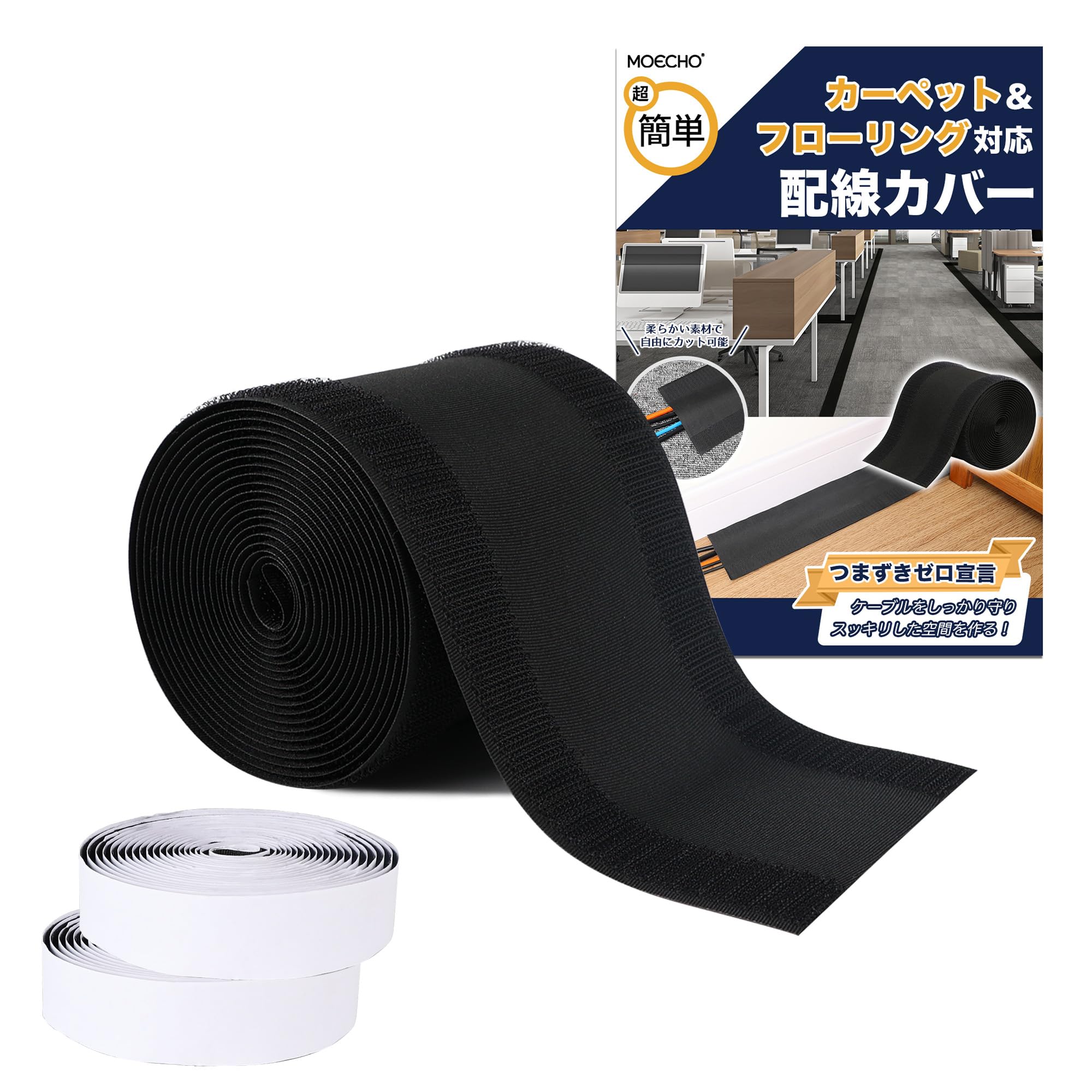 配線カバー 配線隠し 【自由にカット・10cm×3m・繰り返し使用可能】 配線 カバー ケーブルカバー コード隠し ケーブル コード 隠し 配線カバー コードカバー つまずき 感電 防止 マジックテープ 面ファスナー フロア カーペット 床 絨毯 pcデスク 適用 オフィス 倉庫 家庭用 (ブラック×フローリング用【モヘア面テープ付き】)