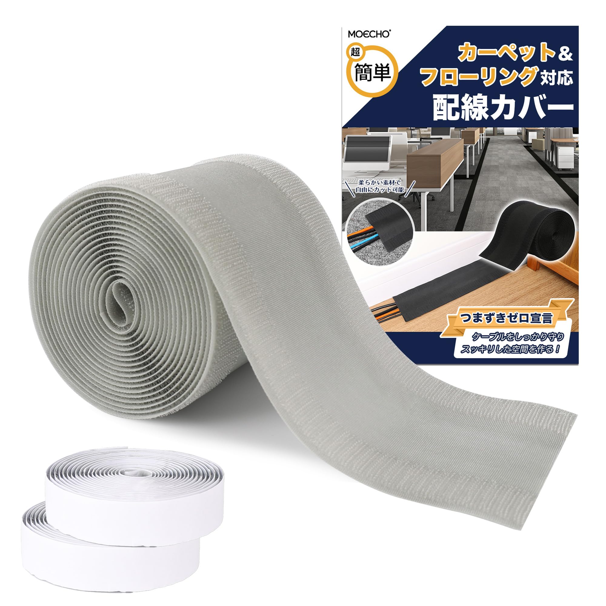 配線カバー 配線隠し 【自由にカット・10cm×3m・繰り返し使用可能】 配線 カバー ケーブルカバー コード隠し ケーブル コード 隠し 配線カバー コードカバー つまずき 感電 防止 マジックテープ 面ファスナー フロア カーペット 床 絨毯 pcデスク 適用 オフィス 倉庫 家庭用 (グレー×フローリング用【モヘア面テープ付き】)