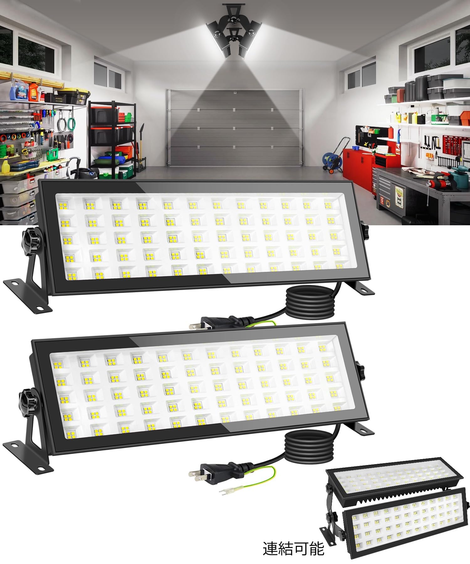 高天井灯 LED投光器 120W 13000lm 【2個セット/連結で240W 26000lm】 1200W水銀灯相当 5000K 昼白色 IP66防水防塵 120度広角 180度回転ブラケット 1.5mコード付 PSE認証済 倉庫 工場 駐車場 看板灯 作業灯 屋内 屋外 兼用 (120W 2個入)